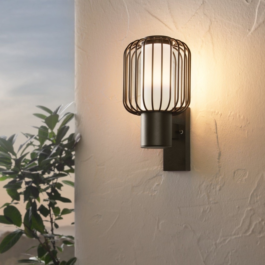 Venkovní nástěnné svítidlo EGLO RAVELLO 98721 je stylové a praktické řešení pro osvětlení exteriéru. Je vyrobeno z odolného pozinkovaného kovu v černé barvě a doplněno atraktivní kovovou mřížkou, která nejen zdobí, ale také chrání stínidlo a žárovku před poškozením. Bílé plastové stínidlo zajišťuje příjemně rozptýlené světlo. Díky stupni krytí IP44 je svítidlo odolné proti stříkající vodě a vhodné pro bezpečné venkovní použití. Ideálně se hodí ke vstupu do domu, na balkóny, terasy, pergoly nebo na zdi garáže a příjezdových cest. Svítidlo je určeno pro žárovku s paticí E27 do výkonu 28W (není součástí balení).