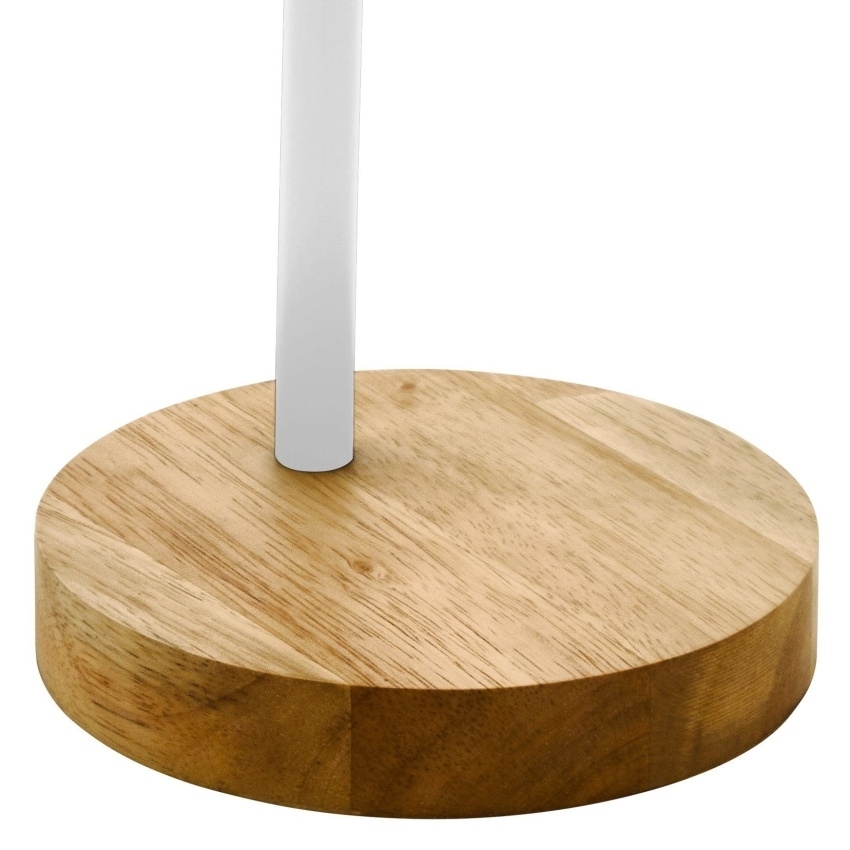 Stolní svítidlo EGLO VERADAL 98832 v bílé a hnědé barvě s kombinací kovu a dřeva, paticí E27 a kolébkovým vypínačem.