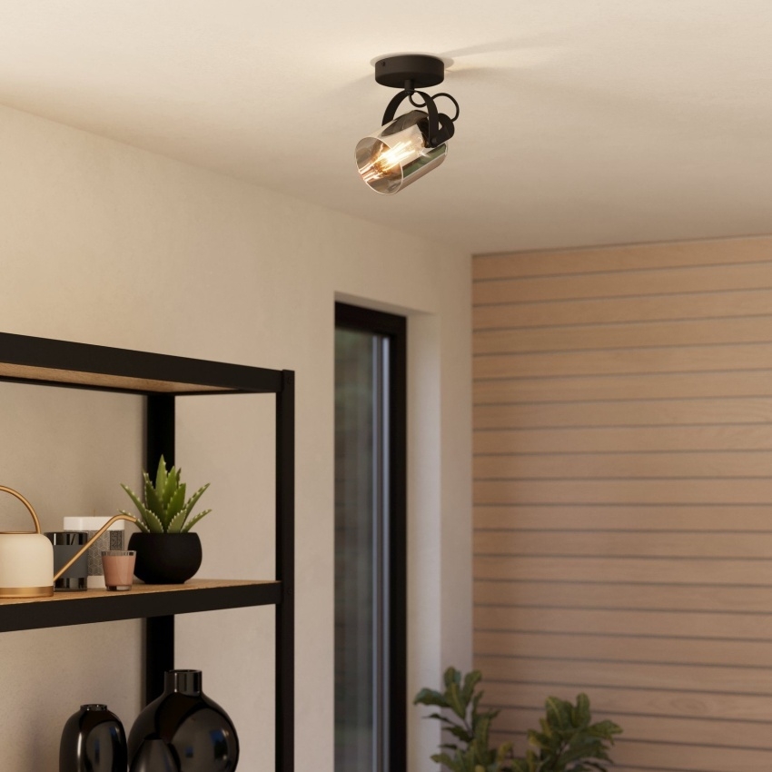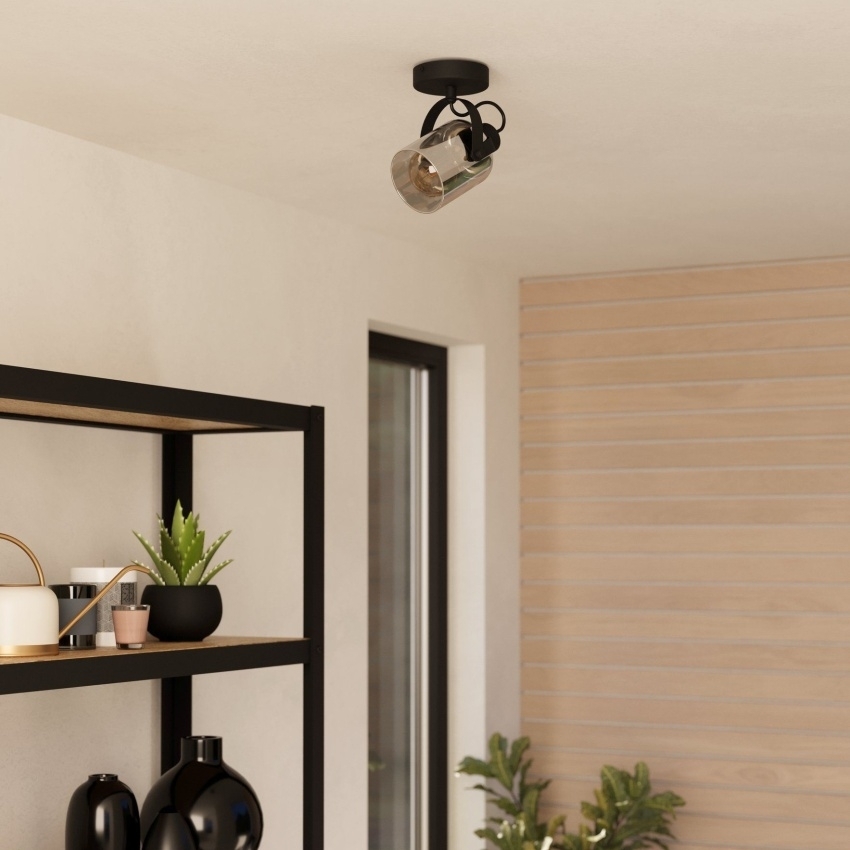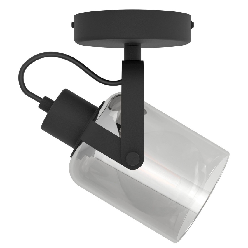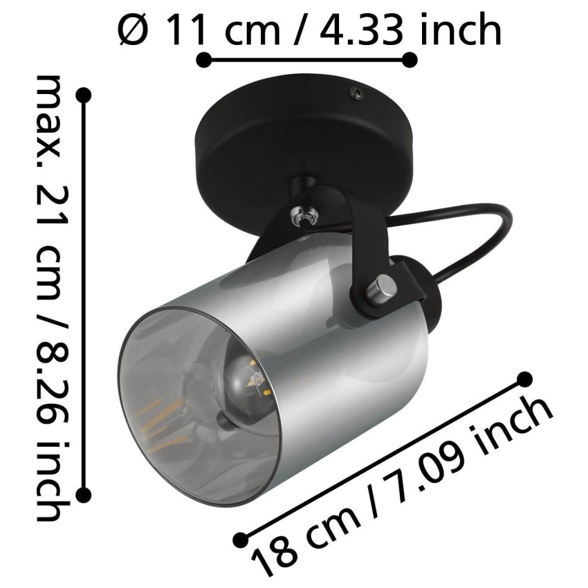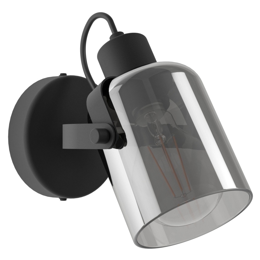 Nástěnné bodové svítidlo EGLO BERREGAS 99052 v kombinaci černé kovové základny a kouřového skla s paticí E27.