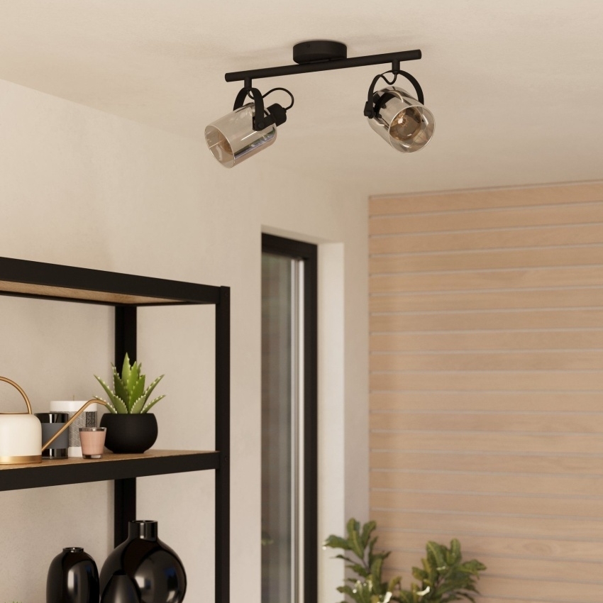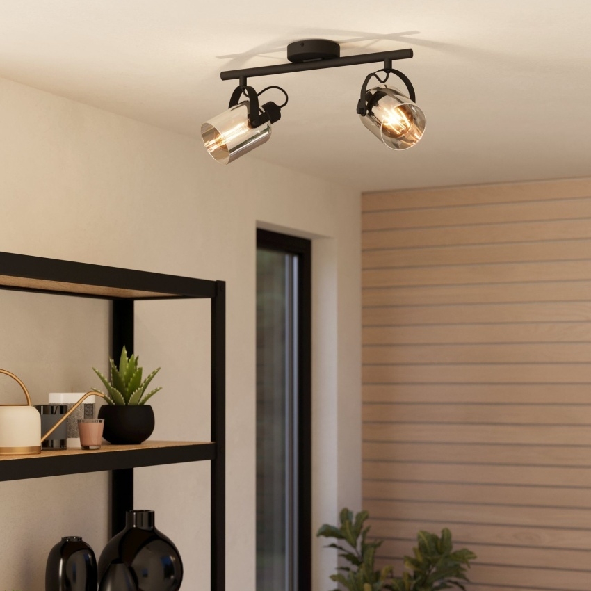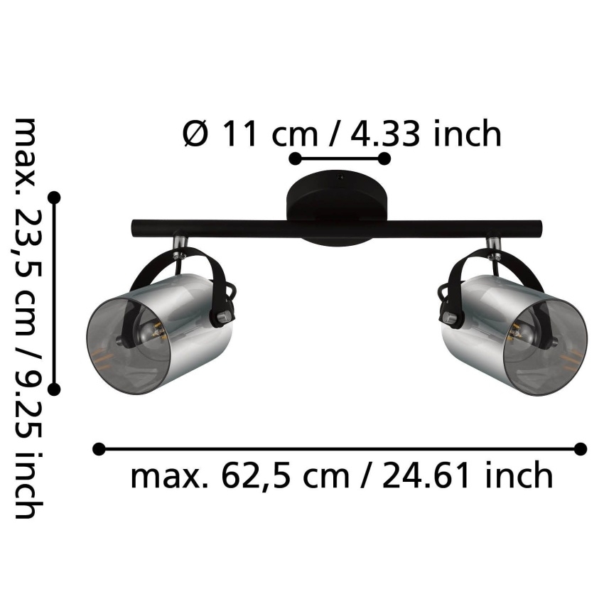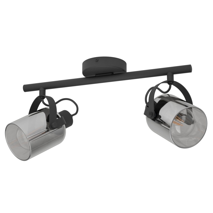 Stropní bodové svítidlo EGLO BERREGAS 99053 v černém provedení s kouřovým sklem a dvěma paticemi E27.