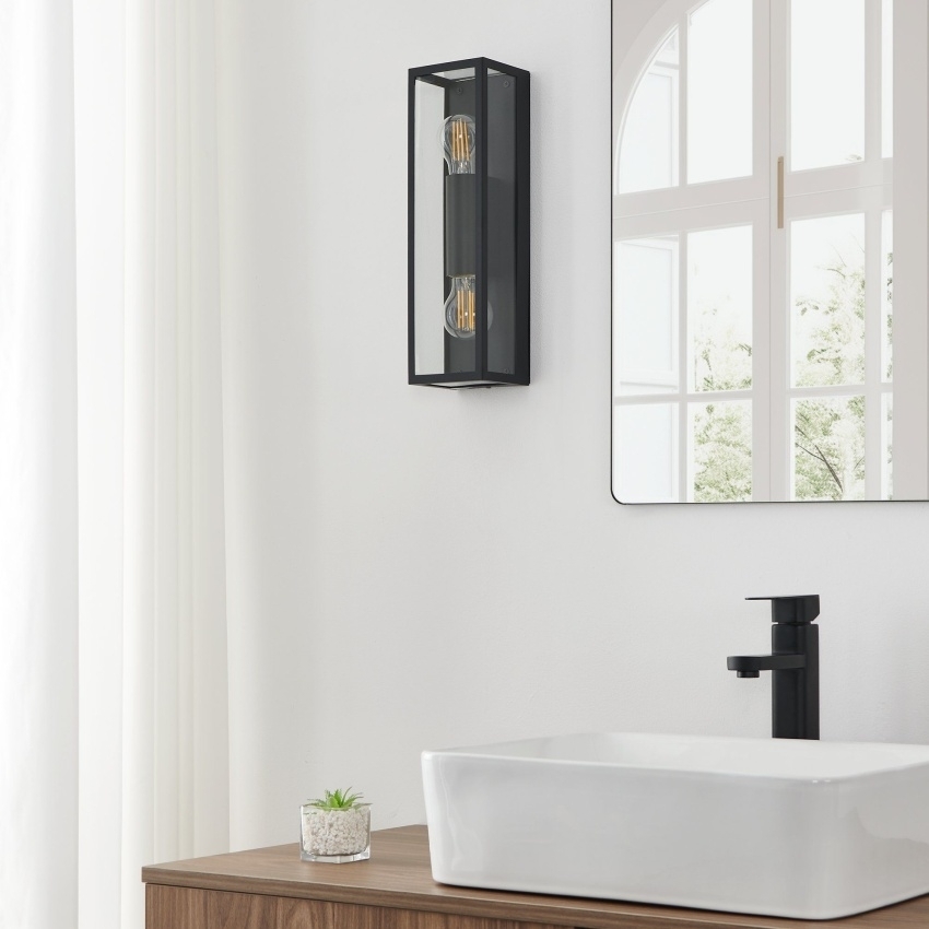 Nástěnné svítidlo EGLO AMEZOLA 99124 zaujme svým jednoduchým geometrickým designem, který kombinuje černý kov a čiré sklo. Díky univerzálnímu vzhledu se hodí do různých typů interiérů, kde vynikne zejména s dekorativními žárovkami E27 (max. 2x60W, nejsou součástí balení). Svítidlo je ideální pro použití v chodbě, hale, obývacím pokoji nebo nad pracovní plochou, stůl či sedací soupravu. Díky stupni krytí IP44 je vhodné také do koupelny, kde odolává vlhkosti a stříkající vodě. EGLO doporučuje použití žárovky 11555.