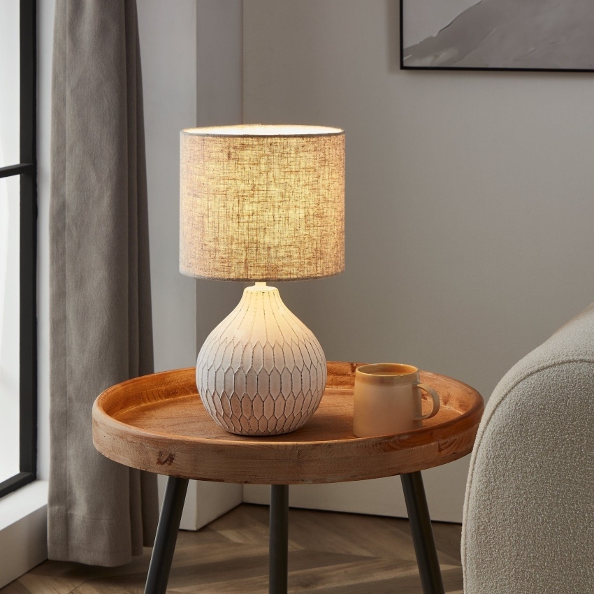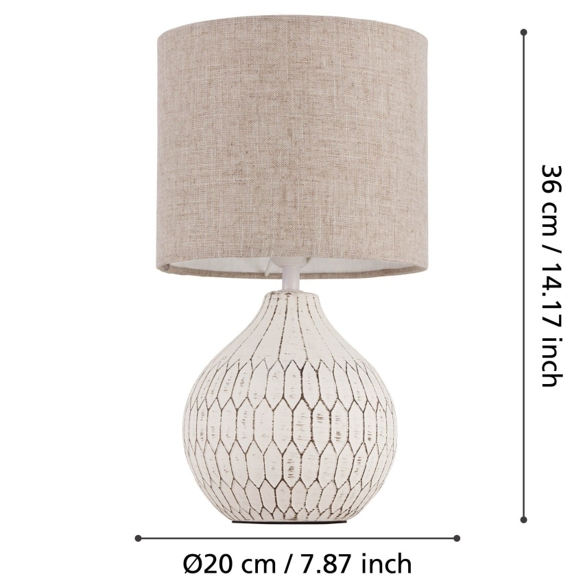 Stolní svítidlo EGLO BELLARIVA 3 99332 vnese do vašeho interiéru útulnou atmosféru díky jemným přírodním tónům. Základna z bílé keramiky je doplněna světle hnědým textilním stínidlem z lnu, které poskytuje příjemně rozptýlené světlo. Lampička je ideální na noční stolek do ložnice, ale skvěle poslouží i jako doplňkové osvětlení v obývacím pokoji, pracovně, chodbě či hale. Svítidlo je určeno pro jednu žárovku s paticí E27 do výkonu 40W (není součástí balení).