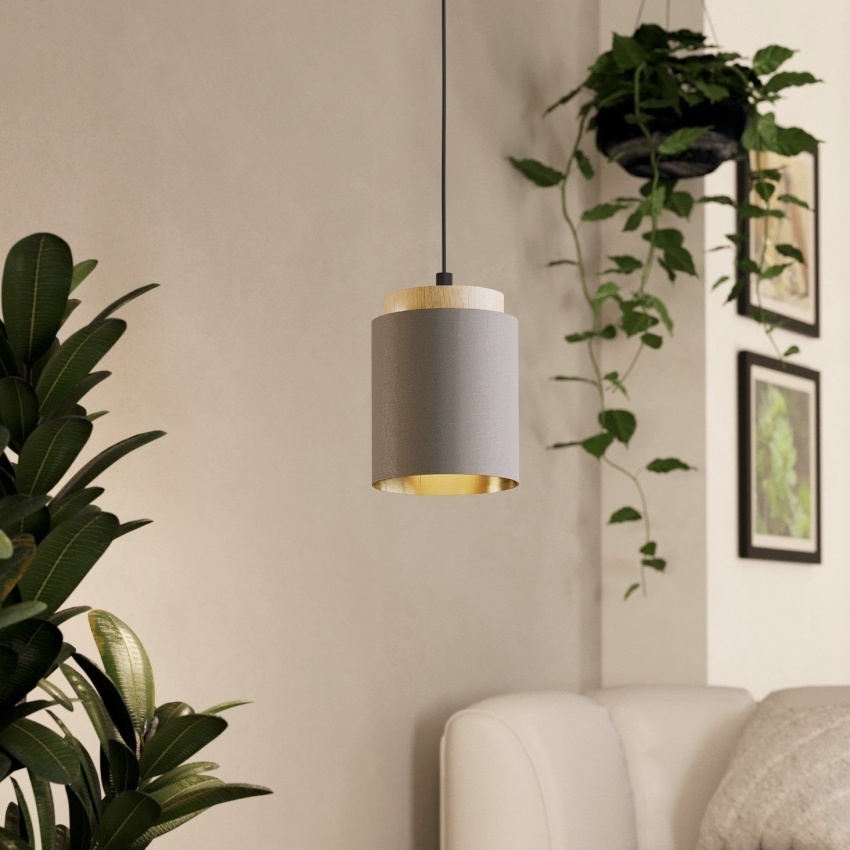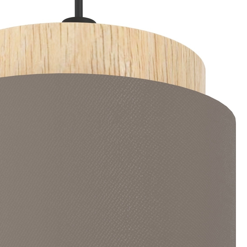 Závěsné svítidlo EGLO ALBARIZA 99445 v kombinaci černého kovu, dřeva a textilního stínidla v barvě cappuccino.