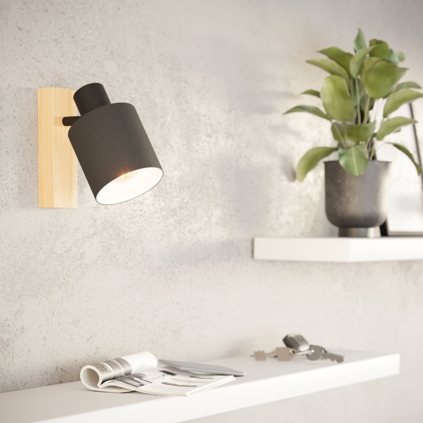 Nástěnné bodové svítidlo EGLO BATALLAS 99488 přináší do interiéru hravost, lehkost a útulnou atmosféru. Kombinace přírodního dřeva, černého kovu a textilního stínidla v černo-bílé barvě vytváří originální a stylový vzhled, který se hodí do moderních i klasických interiérů. Svítidlo je ideální k nasvícení postele, stolku nebo pracovní plochy, ale také do chodby, haly či na schodiště. Je určeno pro jednu žárovku E27 do výkonu 10W (není součástí balení).