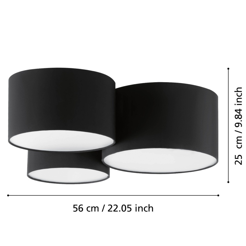 Stropní svítidlo EGLO PASTORE 2 99508 zaujme elegantním provedením s textilními stínidly v kombinaci černé a bílé barvy. Moderní a stylový vzhled doplní interiér obývacího pokoje, ložnice, jídelny nebo pracovny, ale hodí se také do chodby, haly či na schodiště. Díky třem paticím E27 poskytuje dostatek světla a můžete jej snadno přizpůsobit výběrem vhodných žárovek. Svítidlo se stane výrazným prvkem prostoru a zároveň navodí příjemnou atmosféru.