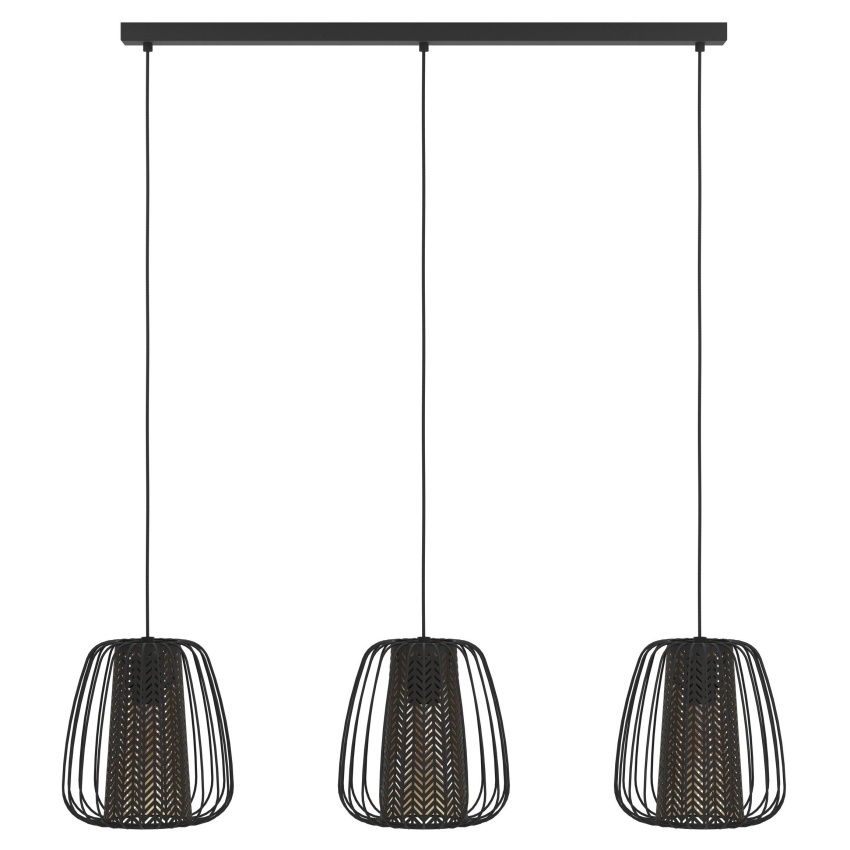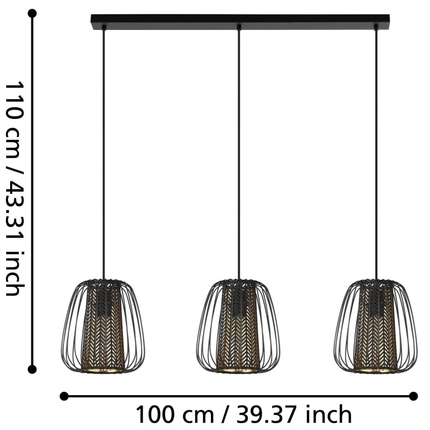 Závěsné svítidlo EGLO CURASAO 99662 je stylovým prvkem, který zaujme kombinací černé a zlaté barvy a propracovaným tvarem. Kovové tělo v černé barvě doplňují stínidla z textilu se zlatým vnitřkem, která vytvářejí příjemné světelné efekty a dodávají interiéru elegantní atmosféru. Díky třem paticím E27 poskytne dostatek světla a skvěle se hodí do obývacího pokoje, jídelny, ložnice, haly nebo nad barový pult.
