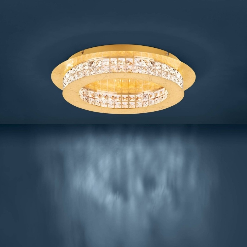 Stropní svítidlo EGLO PRINCIPE 39405 je vyrobeno z kulatého kovového těla, které je doplněno prstencem z různých skleněných prvků umístěných k sobě. Integrované LED diody v prstenci poskytují teplé bílé světlo. Svítidlo je stmívatelné, má světelný tok 3800 lm, teplotu chromatičnosti 3000 K a maximální výkon 10x3,15 W. Tělo je vyrobeno z oceli v zlatavé barvě, stínidlo tvoří broušené sklo v čirém provedení. Průměr svítidla je 500 mm a výška 105 mm. Podle uvedeného popisu je ideální do obývacího pokoje, jídelny nebo ložnice.