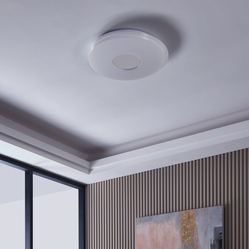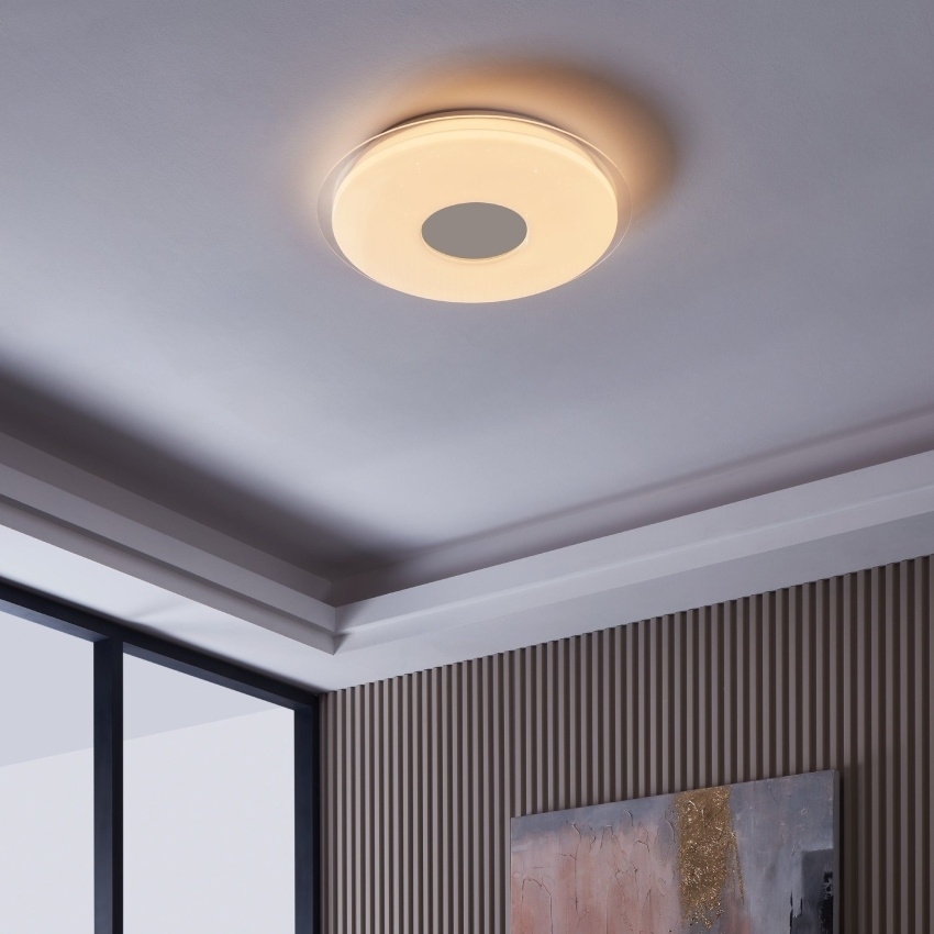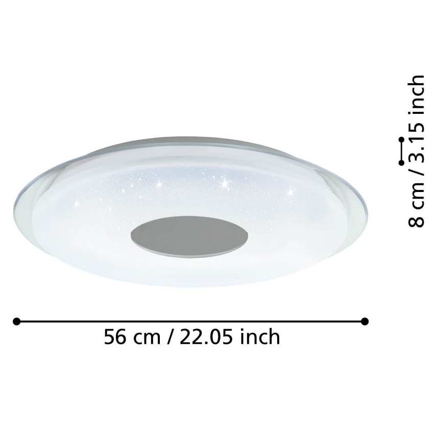 Svítidlo EGLO LANCIANO-Z 900005 je moderní LED stropní osvětlení s průměrem 56 cm, které zaujme elegantním bílým designem a třpytivým efektem difuzoru. Nabízí výkon 4x11,2 W a světelný tok 4960 lm, což zajišťuje intenzivní a rovnoměrné osvětlení i větších prostor. Díky funkci CCT lze měnit teplotu světla od teplé 2700 K přes neutrální až po studenou 6500 K, takže si snadno nastavíte atmosféru podle aktuální potřeby. Svítidlo je součástí systému EGLO Connect a lze jej ovládat pomocí dálkového ovladače nebo mobilní aplikace.