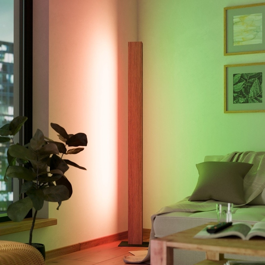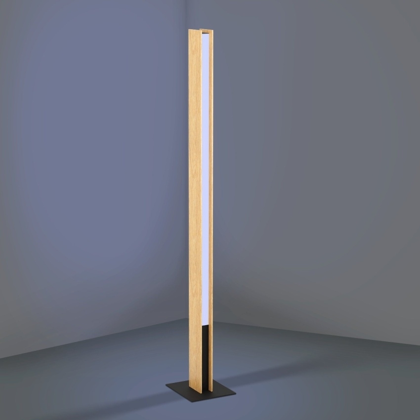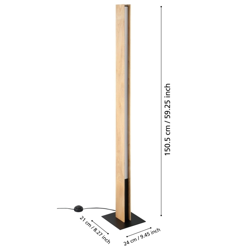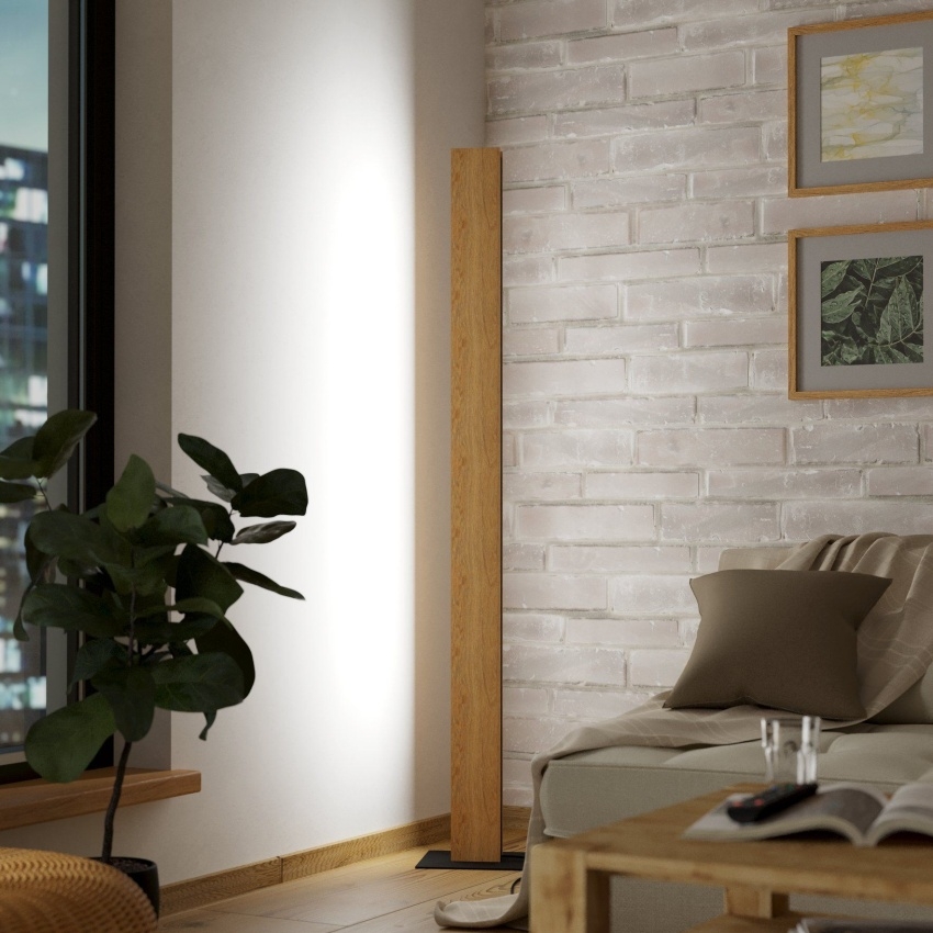 Svítidlo EGLO ANCHORENA-Z 900392 je chytrá stojací LED lampa z řady Connect-Z, která spojuje moderní technologie s přírodním designem. Podlouhlé tělo z hnědého dřeva kaučukovníku je doplněno matně bílým plastovým difuzorem a černou kovovou základnou s praktickým nožním spínačem na kabelu. Integrovaný LED zdroj o výkonu 35 W poskytuje světelný tok 3980 lm a umožňuje nastavení teploty bílé barvy v rozsahu 2700–6500 K i barevného RGB osvětlení. Lampa je stmívatelná a nabízí ovládání pomocí aplikace AwoX Home Control, dálkového ovladače i hlasových asistentů. Podporuje Bluetooth a ZigBee 3.0 a přináší funkce jako časovač nebo simulace přítomnosti. Díky lineárnímu designu je vhodná do obývacího pokoje, ložnice nebo jídelny.