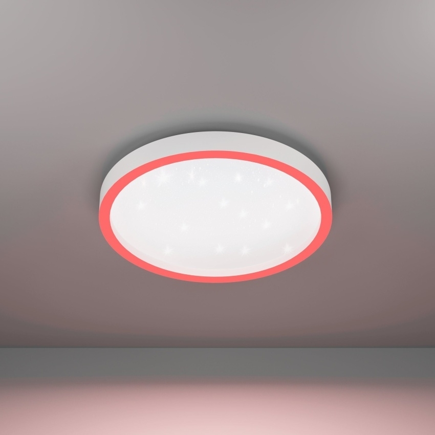 Chytré stropní LED svítidlo EGLO MONTEMORELOS-Z 900408 v bílém provedení s výkonem 17,8 W, světelným tokem 2150 lm, RGB + CCT funkcí a efektem hvězdné oblohy.