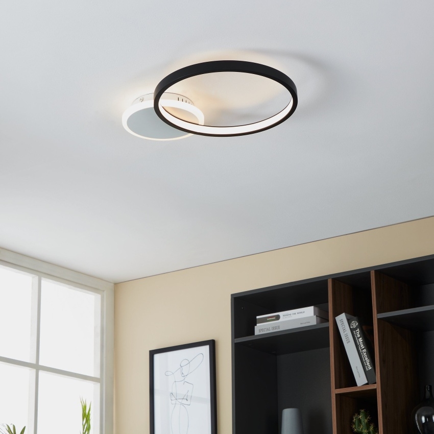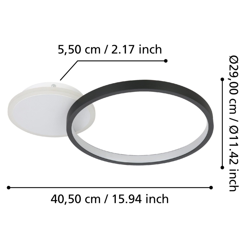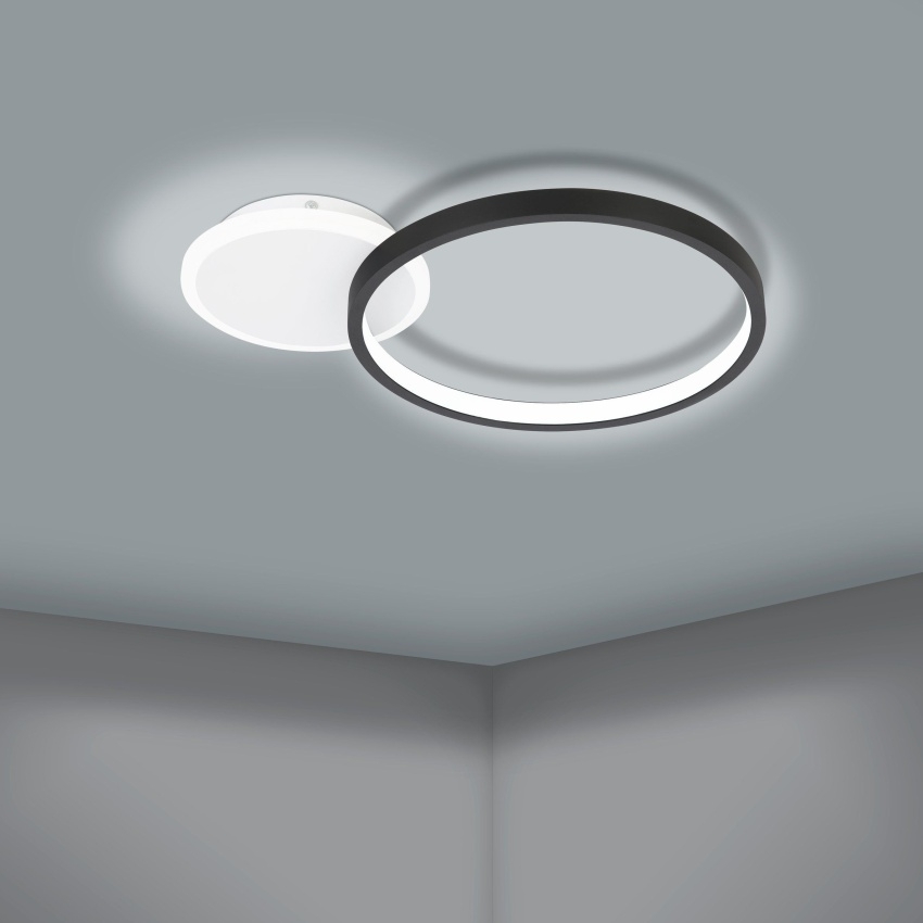 Moderní stropní LED svítidlo EGLO GAFARES 900421 v černo-bílé kombinaci s výkonem 15 W, světelným tokem 2100 lm a nastavitelnou teplotou světla 3000–6500 K.