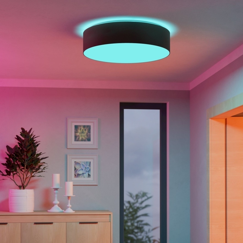 Stropní LED svítidlo EGLO ROMAO-Z 900441 z řady Connect-Z smart home spojuje elegantní textilní stínidlo v šedohnědém odstínu taupe s moderními technologiemi. Kulatý tvar o průměru 57 cm doplňuje bílý plastový difuzor, který zajišťuje rovnoměrné rozptýlení světla. Integrovaný LED zdroj o výkonu 35 W poskytuje světelný tok 3500 lm a umožňuje nastavení teploty světla v rozsahu 2700–6500 K i výběr z barev RGB. Svítidlo lze pohodlně ovládat pomocí aplikace AwoX Home Control, dálkového ovladače nebo hlasových asistentů. Díky podpoře Bluetooth a ZigBee 3.0 získáte přístup i k dalším chytrým funkcím, jako je stmívání, časovač nebo simulace přítomnosti. Moderní design v přírodním odstínu taupe zapadne do obývacího pokoje, ložnice, jídelny či předsíně a stane se stylovým doplňkem interiéru.