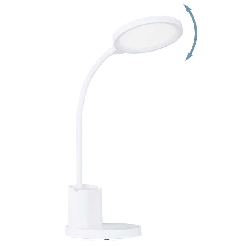Stolní svítidlo EGLO BROLINI 900529 je praktická LED lampička s vestavěným Li-Ion akumulátorem, která se hodí i do míst bez přívodu elektřiny. Dotykové ovládání umožňuje krokové nastavení intenzity světla a volbu barevné teploty od teplé po studenou bílou (2700–6500 K). Díky pohyblivému krku lze snadno upravit úhel svícení podle potřeby. Lampička je navíc vybavena praktickým držákem na mobilní telefon, což oceníte při sledování videí nebo poslechu hudby. Elegantní bílé provedení zapadne do moderního interiéru.