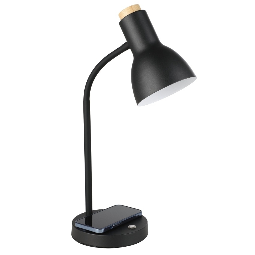 Stolní svítidlo EGLO VERADAL-QI 900628 spojuje moderní design s praktickými funkcemi. Je vyrobeno z černé oceli v kombinaci s přírodním dřevem kaučukovníku s FSC certifikací a doplněno kovovým stínidlem v černo-krémovém provedení. Díky integrovaným LED diodám poskytuje příjemné teplé bílé světlo o výkonu 5,5 W a světelném toku 720 lm. Lampa je stmívatelná a navíc disponuje funkcí bezdrátového nabíjení mobilních zařízení, což z ní činí ideální doplněk do ložnice, pracovny či obývacího pokoje.