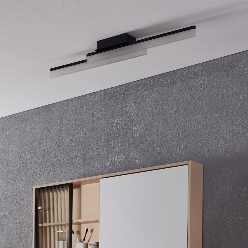 Moderní LED svítidlo EGLO PALMITAL nabízí elegantní a funkční osvětlení pro interiéry i koupelny. Kovové tělo v černém provedení doplňují dva paralelní světelné prvky ze saténového plastu, které rozptylují světlo rovnoměrně a vytvářejí příjemnou atmosféru. Integrované LED diody s teplou bílou barvou světla 3000 K poskytují měkké, nepřímé osvětlení vhodné do obývacích pokojů, chodeb, ložnic nebo koupelen. Stupeň krytí IP44 zajišťuje ochranu proti stříkající vodě, takže je svítidlo ideální i pro vlhké prostory. Minimalistický design a kvalitní zpracování podtrhují jeho univerzální využití v moderních interiérech.