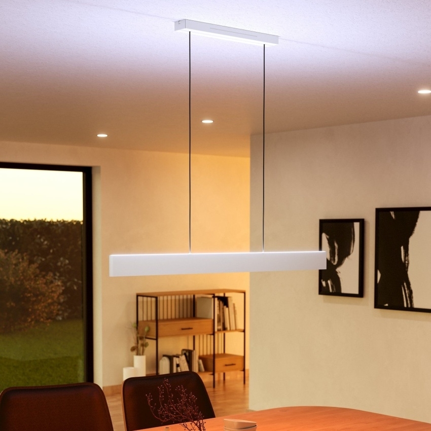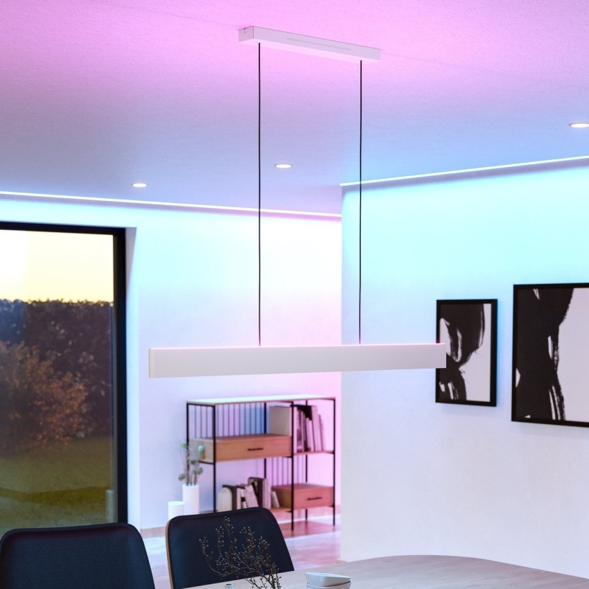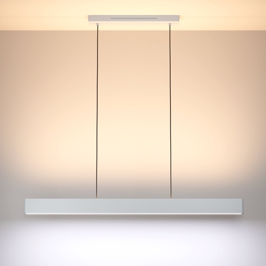 Moderní závěsné LED svítidlo EGLO ANDREAS-Z z chytré série Connect-Z nabízí elegantní design a špičkové funkce chytrého osvětlení. Tenké tělo z hliníku se světle šedým strukturovaným povrchem působí minimalisticky a nadčasově. Svítidlo má dva samostatně ovladatelné LED moduly — horní a dolní — které lze řídit nezávisle podle potřeby. Pomocí aplikace AwoX Home Control lze jednoduše nastavit barvu světla od teplé po studenou bílou (2700–6500 K), vybrat libovolnou barvu RGB či regulovat intenzitu jasu. Ovládání je možné i přes Bluetooth, ZigBee 3.0, kompatibilní hlasové asistenty nebo dálkový ovladač. Díky chytrým funkcím, jako je stmívání, časovač, disco režim či simulace přítomnosti, se svítidlo dokonale přizpůsobí každé situaci a stylu interiéru.