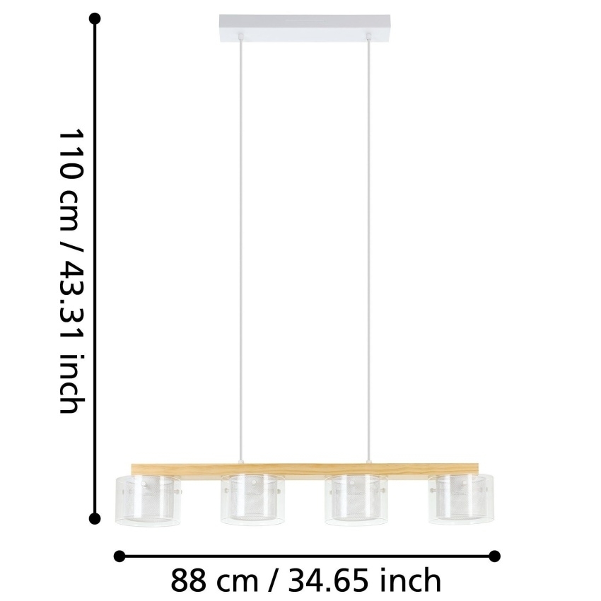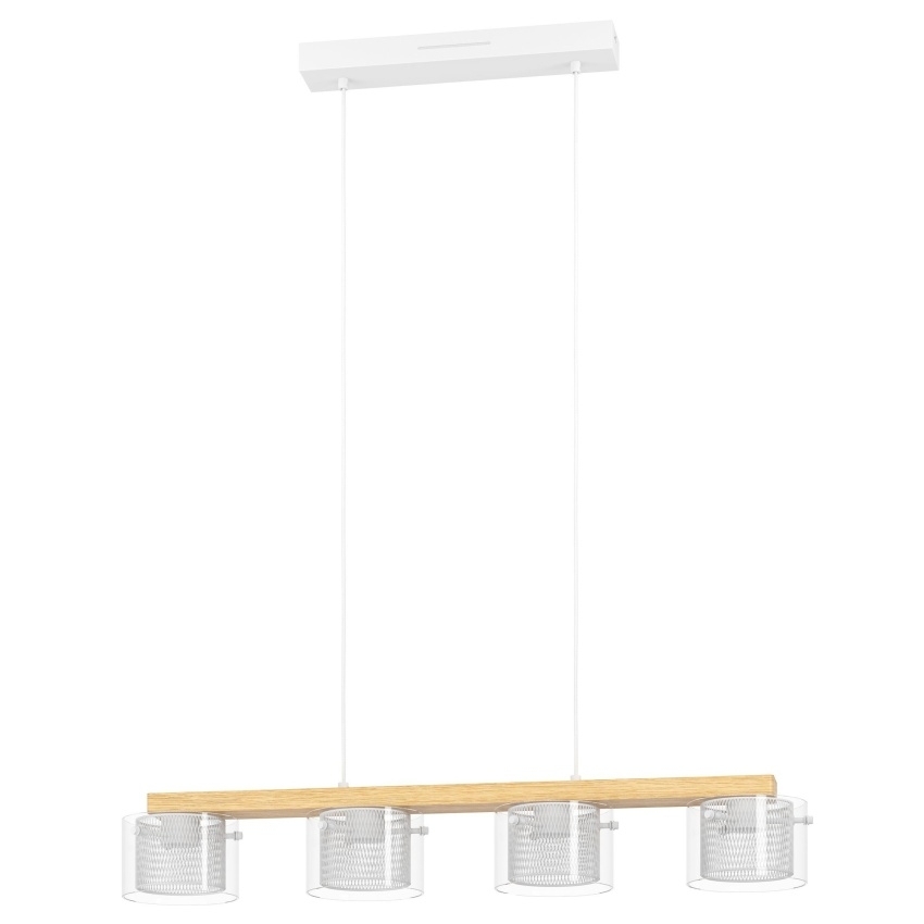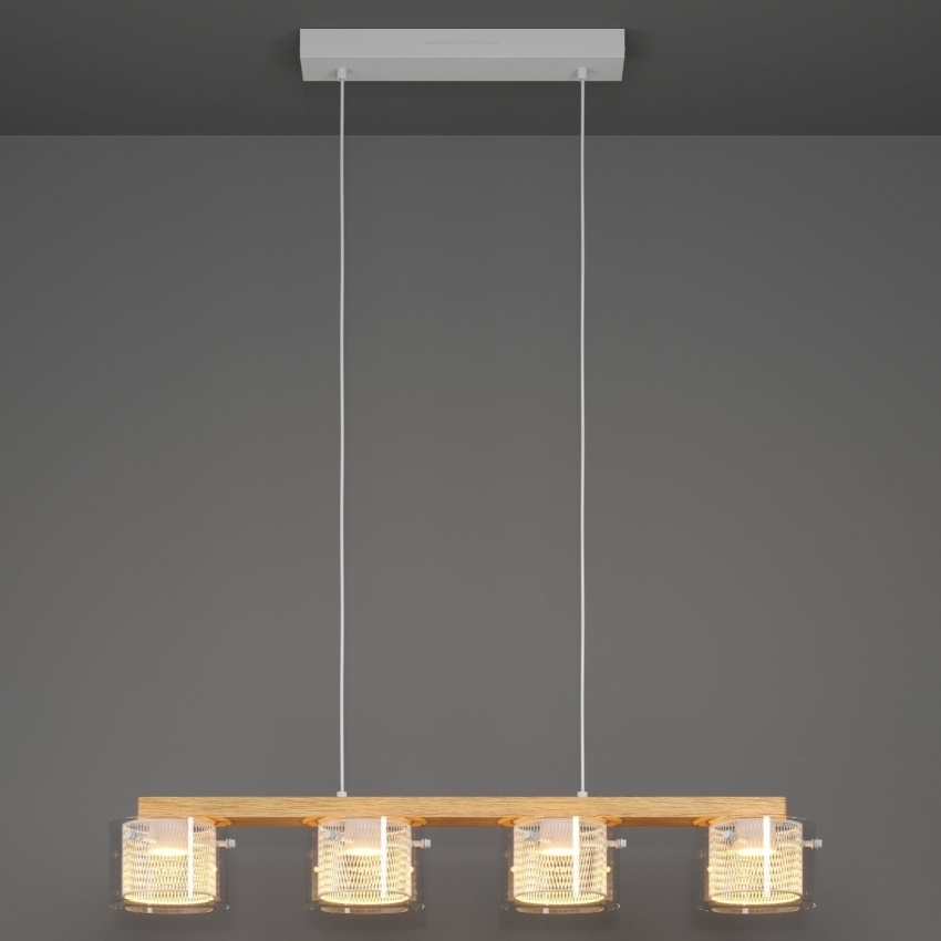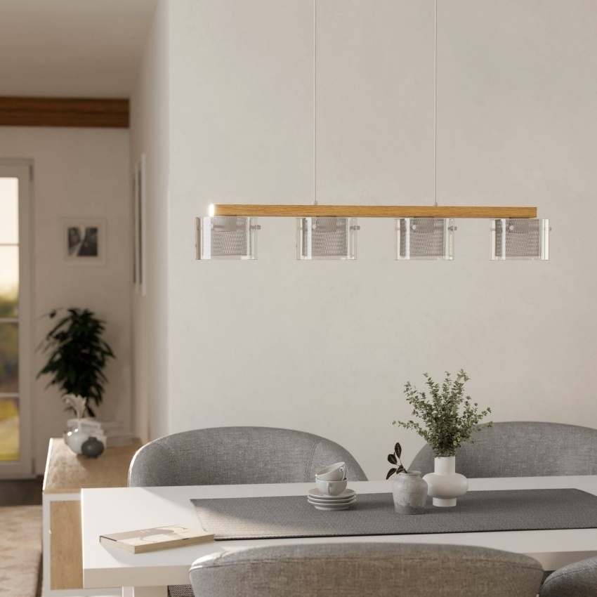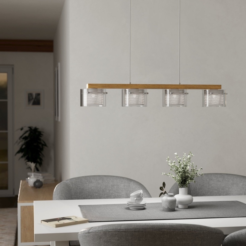 Závěsné chytré LED svítidlo EGLO PORTICO-Z 900881, 4×3,7 W, 2200 lm, 2700–6500 K, RGB+TW, dřevo/bílá.