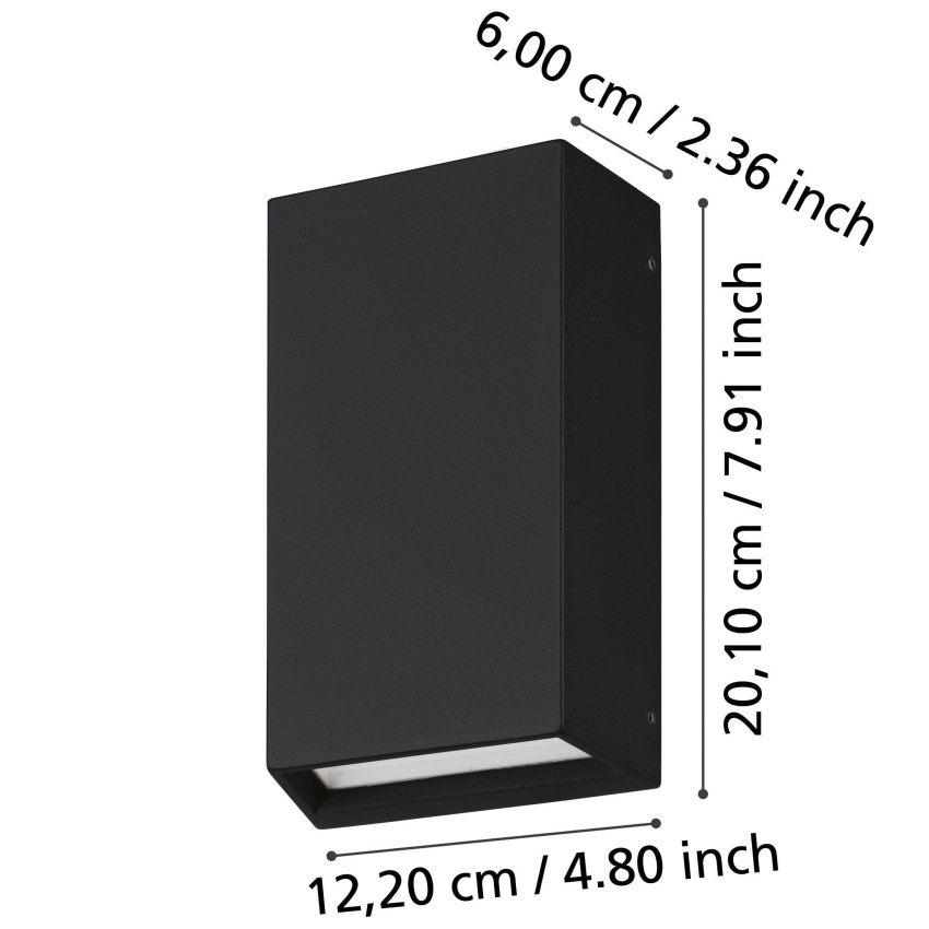 Venkovní nástěnné LED svítidlo EGLO SPONGANO 900886, 2×5 W, 1200 lm, 3000–6500 K, černá, IP65.