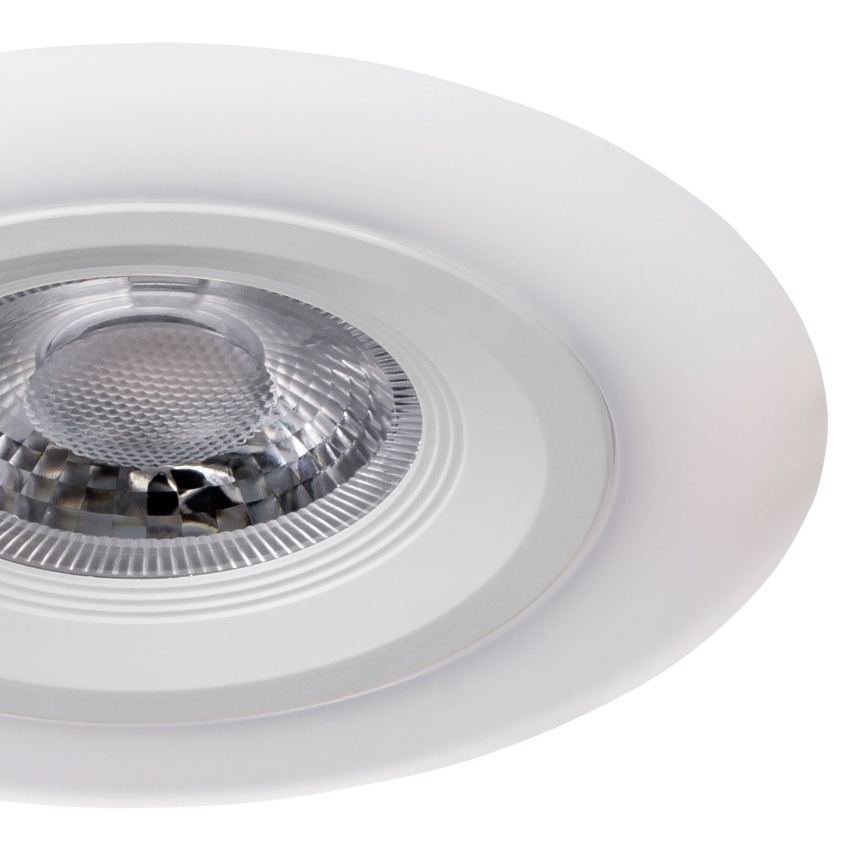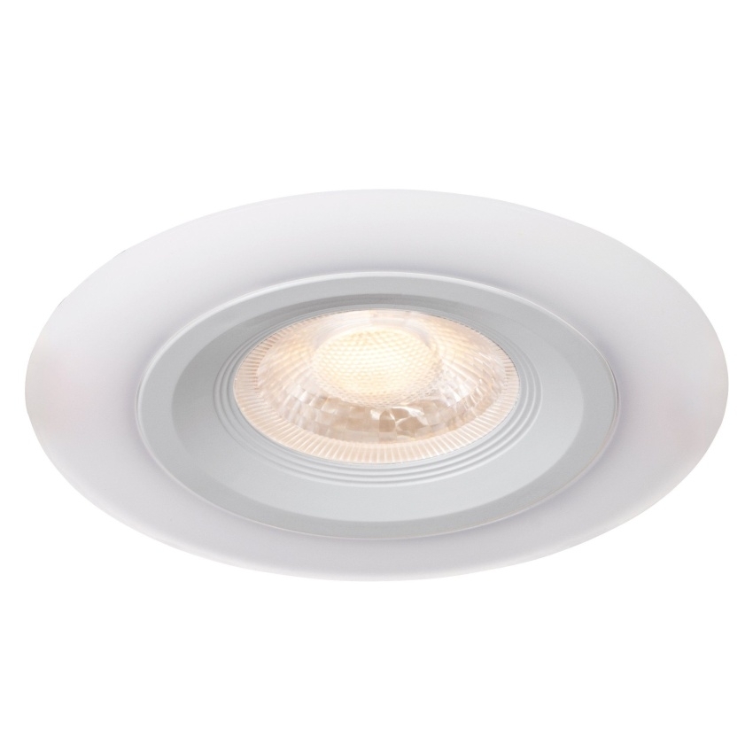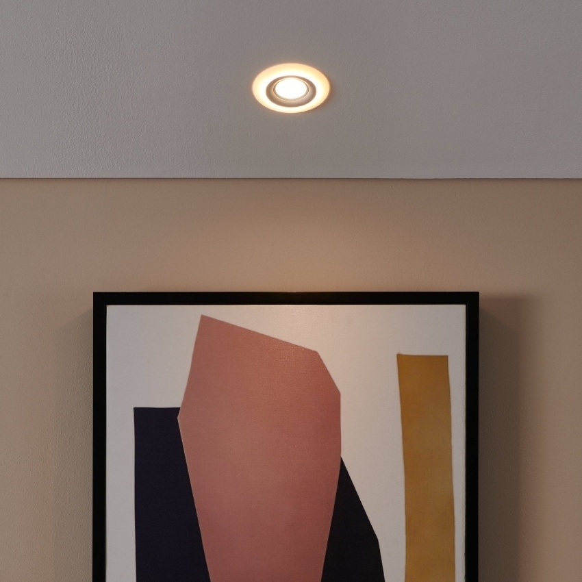 Moderní vestavné svítidlo EGLO CALONGE 900912 v bílém provedení zaujme elegantním designem s osvětleným vnějším prstencem. Integrované LED diody poskytují příjemné teplé bílé světlo o teplotě 3000 K a výkonu 4,8 W. Unikátní funkcí je možnost přepínání mezi třemi úrovněmi osvětlení prostřednictvím běžného nástěnného vypínače – středové světlo, prstencové nepřímé světlo nebo kombinace obojího. Svítidlo má také praktickou paměťovou funkci, která si pamatuje poslední zvolený režim. Díky jednoduchému a čistému vzhledu se hodí do každého moderního interiéru, například do kuchyně, obývacího pokoje nebo chodby.