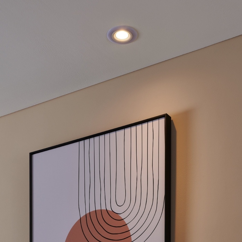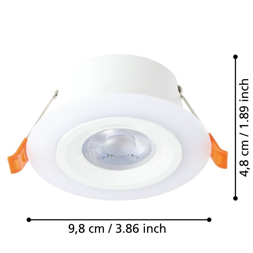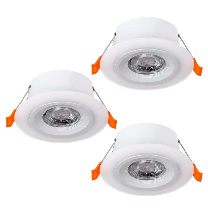 Sada tří vestavných svítidel EGLO CALONGE 900913 nabízí elegantní a moderní řešení osvětlení interiéru. Každé svítidlo je vyrobeno z kvalitního bílého plastu s dekorativním osvětleným vnějším prstencem, který dodává světlu jemný a atraktivní vzhled. Díky integrovaným LED diodám poskytují příjemné teplé bílé světlo o teplotě 3000 K. Ovládání umožňuje přepínání mezi třemi úrovněmi světla pomocí běžného nástěnného vypínače – středové světlo, vnější prstenec nebo kombinace obojího. Každé svítidlo navíc disponuje paměťovou funkcí, která uchová poslední zvolené nastavení. Ideální pro obývací pokoje, kuchyně, chodby či ložnice.
