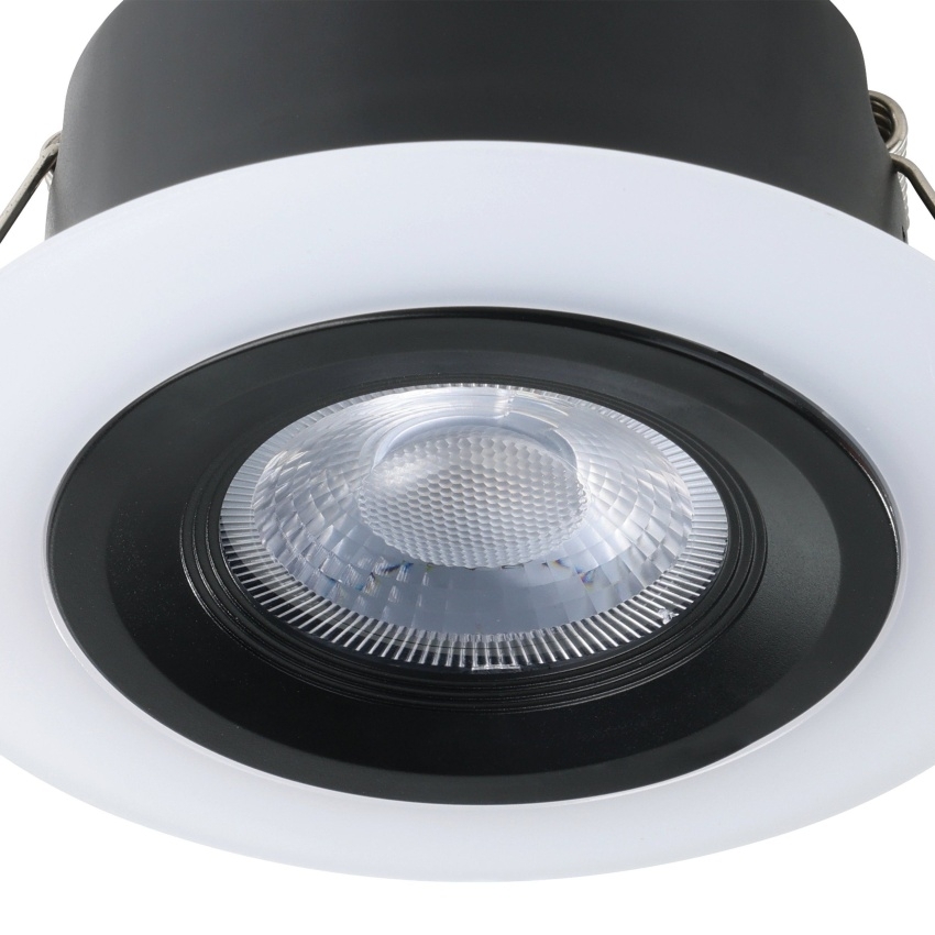 Elegantní vestavné svítidlo EGLO CALONGE 900914 kombinuje černé plastové tělo s osvětleným vnějším prstencem v bílé barvě, čímž vytváří moderní a decentní kontrast. Integrované LED diody poskytují příjemné teplé bílé světlo o teplotě 3000 K a výkonu 4,8 W. Pomocí běžného nástěnného vypínače lze snadno přepínat mezi třemi úrovněmi osvětlení – centrální světlo, prstencové světlo nebo kombinace obou. Praktická paměťová funkce navíc uchová poslední zvolené nastavení. Svítidlo je ideální volbou pro moderní interiéry, jako jsou kuchyně, obývací pokoje či chodby. Pro montáž je nutný výřez o průměru 70 mm.