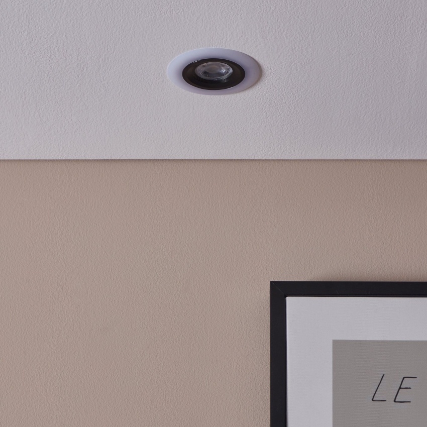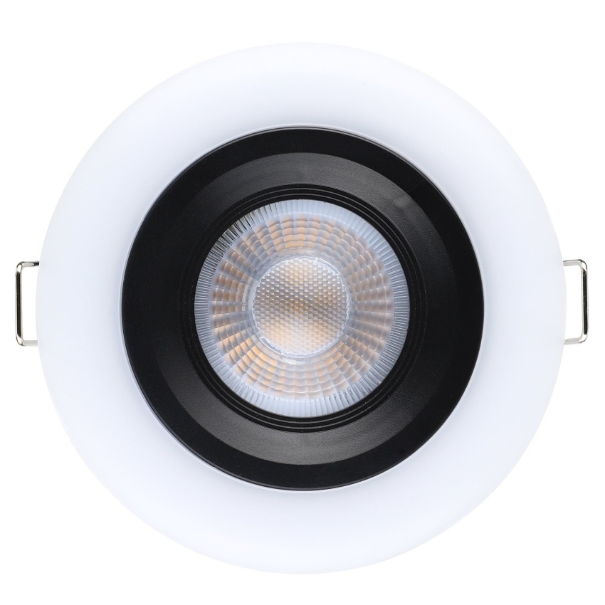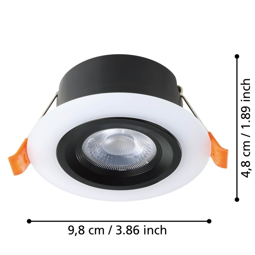 Sada tří vestavných LED svítidel EGLO CALONGE 900915 v elegantní kombinaci černého těla a bílého osvětleného prstence nabízí stylové a funkční osvětlení pro moderní interiéry. Každé svítidlo poskytuje příjemné teplé bílé světlo o teplotě 3000 K a umožňuje přepínání mezi třemi úrovněmi osvětlení pomocí běžného nástěnného vypínače – středové světlo, prstencové nepřímé světlo nebo kombinace obojího. Praktická paměťová funkce si pamatuje poslední zvolené nastavení. Díky decentnímu vzhledu se svítidla skvěle hodí do kuchyní, obývacích pokojů, chodeb i ložnic. Pro montáž je nutný výřez o průměru 70 mm.