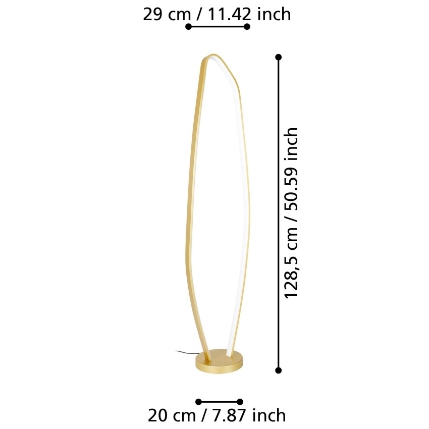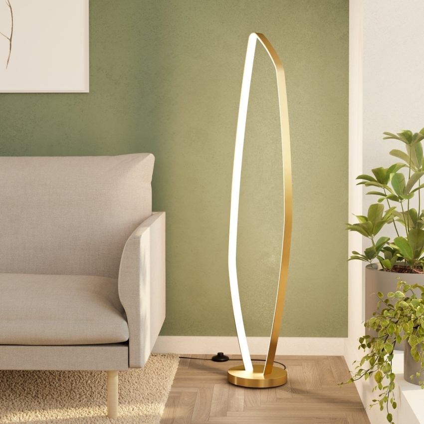 Stojací svítidlo EGLO VALLEROSA 900919 zaujme elegantním designem v kartáčované mosazi a organicky tvarovaným LED profilem. Integrované LED diody vyzařují příjemné teplé bílé světlo o teplotě 3000 K, které vytváří klidnou a útulnou atmosféru v interiéru. Svítidlo se pohodlně ovládá pomocí vypínače umístěného na přívodním kabelu. Kvalitní kombinace materiálů hliníku, oceli a bílého plastu zajišťuje nejen moderní vzhled, ale i dlouhou životnost. Lampa se skvěle hodí do obývacího pokoje, ložnice nebo předsíně, kde dodá prostoru noblesu a decentní světelný akcent.