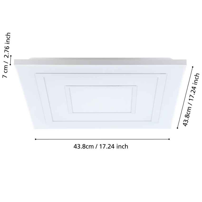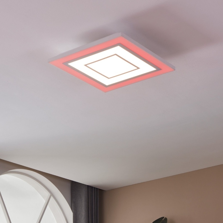 Moderní stropní svítidlo EGLO ALBARCA 900959 zaujme minimalistickým bezrámovým designem s dekorativními čtvercovými prvky v bílé barvě. Integrované LED diody nabízejí možnost volby teploty světla od teplé po studenou bílou a navíc RGB barevné osvětlení vnějšího prstence. Pomocí přiloženého dálkového ovladače lze snadno ovládat barvu světla, jas i intenzitu osvětlení. Díky svému elegantnímu vzhledu je ideální pro moderní interiéry – do obývacího pokoje, kuchyně, ložnice či dětského pokoje.