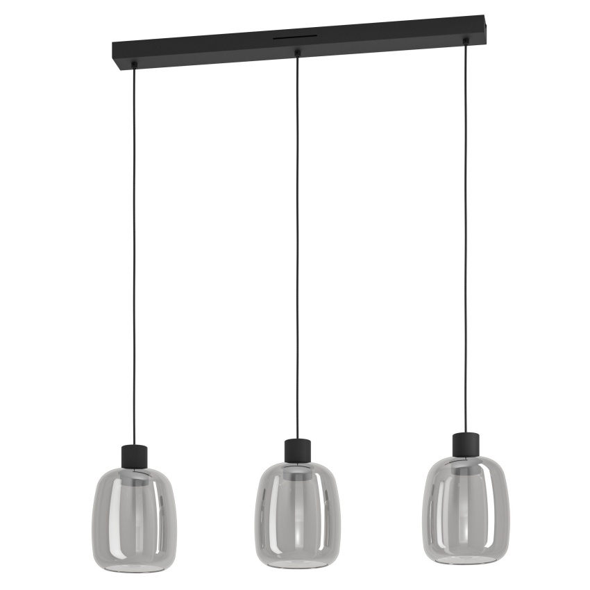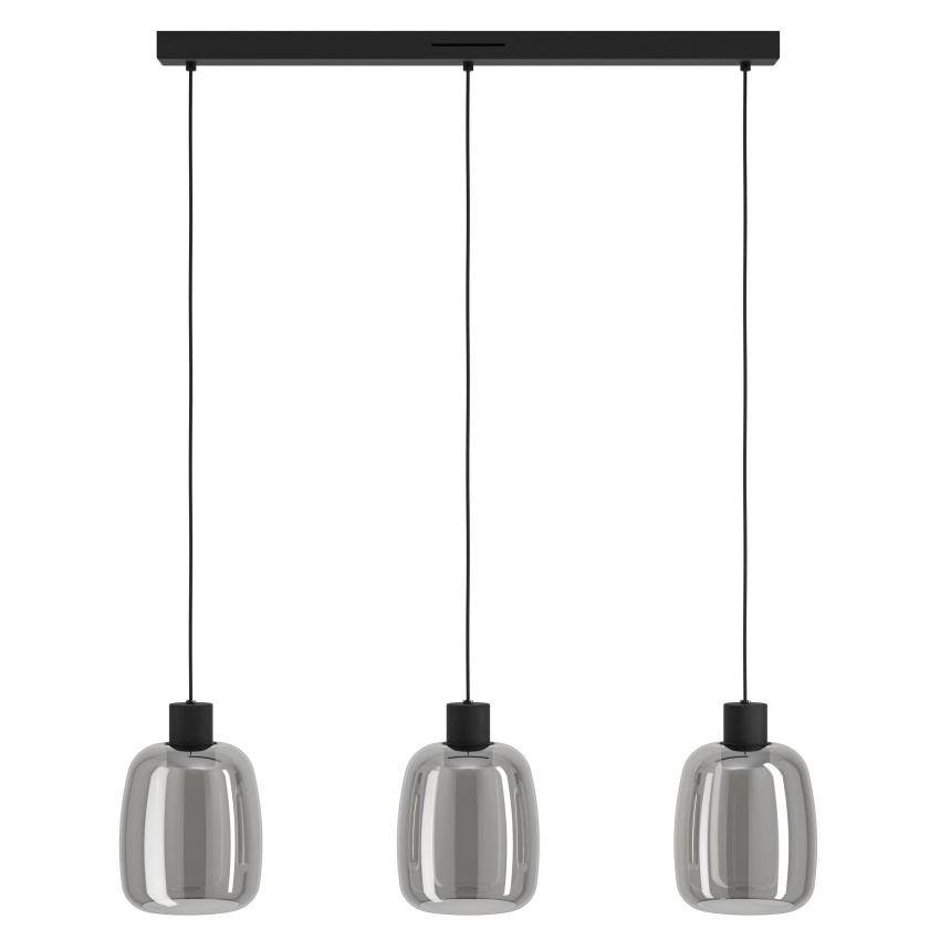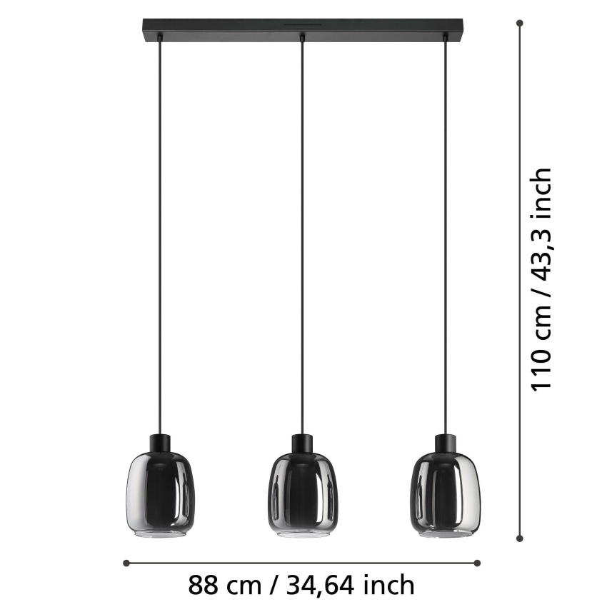 Chytré závěsné svítidlo EGLO MOLOCHIO-Z 901121 z řady EGLO connect.z nabízí elegantní design v kombinaci černého kovu a kouřového skla. Tři samostatné skleněné stínidla na černých textilních kabelech vytvářejí stylové a působivé osvětlení. Svítidlo umožňuje volbu teploty bílé barvy (2700–6500K), barev RGB a plynulé stmívání, a to pomocí aplikace AwoX Home Control nebo dálkového ovladače. Díky kompatibilitě s Bluetooth a ZigBee 3.0 je možné světlo integrovat do chytré domácnosti a ovládat i hlasem. Perfektní doplněk do moderních interiérů – nad jídelní stůl, do obývacího pokoje či kuchyně.