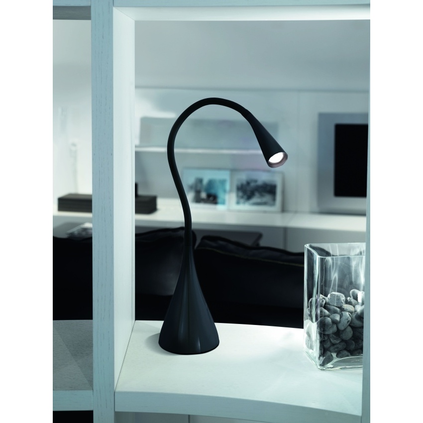 Toto stolní svítidlo ze série SNAPORA je vyrobeno z černého plastu a hliníku. Má ochrannou izolaci a je vybavena LED lampou pro teplé bílé světlo. Lze jej zapnout/vypnout a ztlumit dotykem speciálně navržené „Touch Me“ str