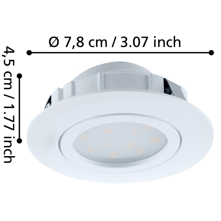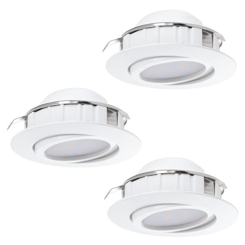Vestavná LED svítidla EGLO PINEDA 95857 (set 3 ks), 3×5,5 W, 1080 lm, 3000 K (teplá bílá), průměr 84 mm, bílá, IP20.