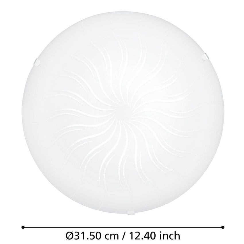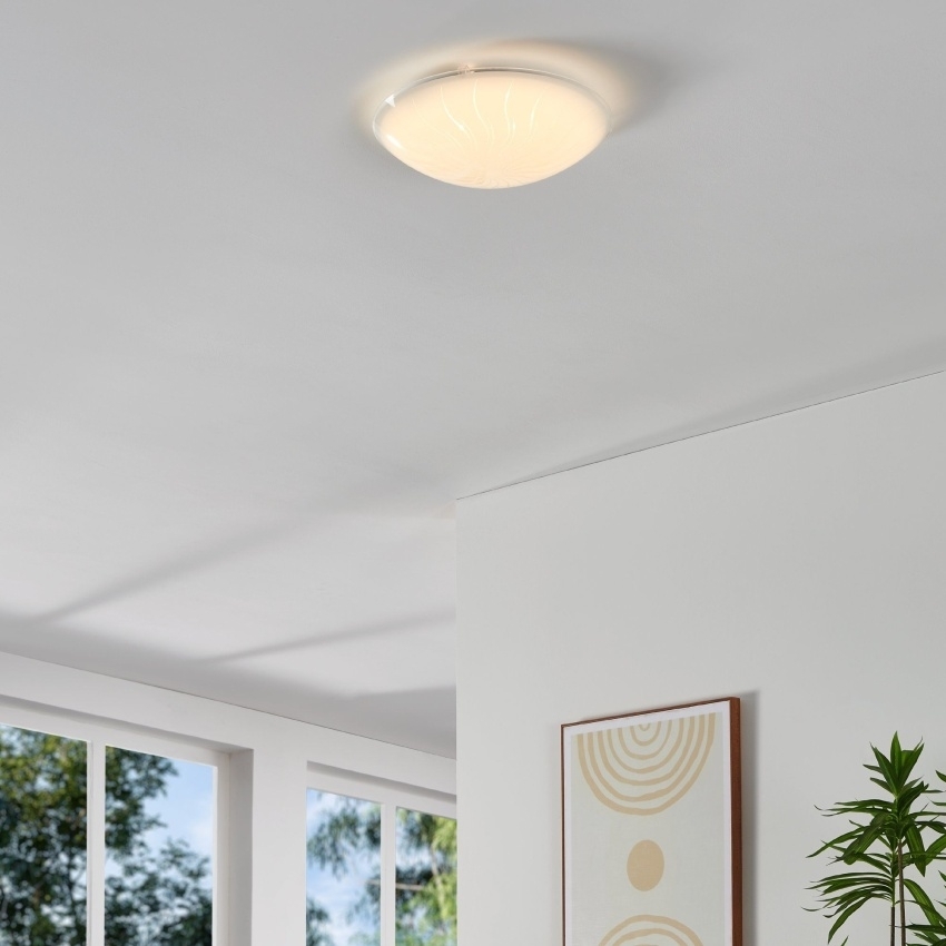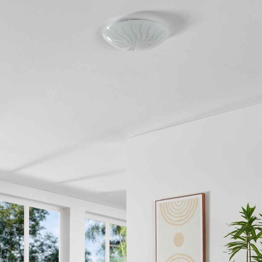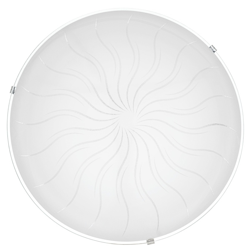 EGLO MARGITTA 1 96111 je elegantní LED svítidlo vhodné pro montáž na strop i na stěnu. Kombinuje bílé kovové tělo s matným skleněným stínidlem, které zdobí jemný vzor připomínající sluneční paprsky. Svítidlo poskytuje teplé bílé světlo o teplotě 3000 K a světelném toku 960 lm, což zajišťuje příjemné osvětlení v kuchyni, obývacím pokoji, hale nebo ložnici. Díky průměru 315 mm se hodí i do menších prostor. LED zdroj s technologií Samsung je součástí balení a lze jej vyměnit.