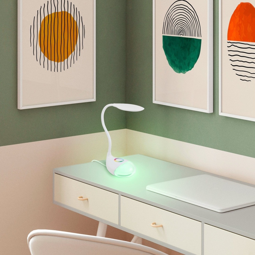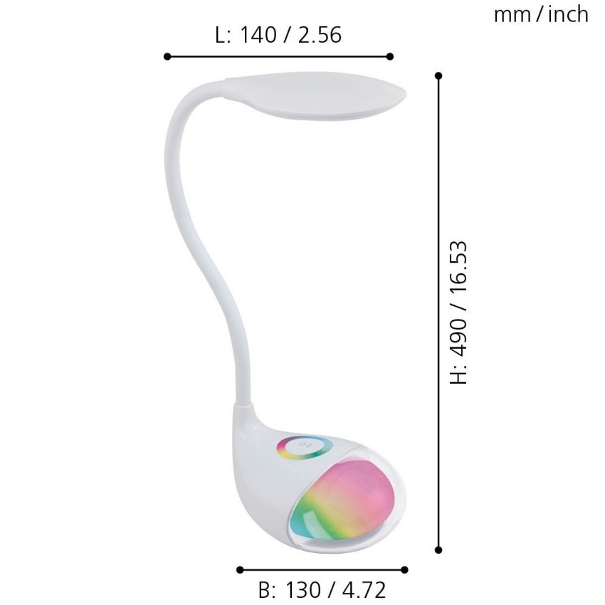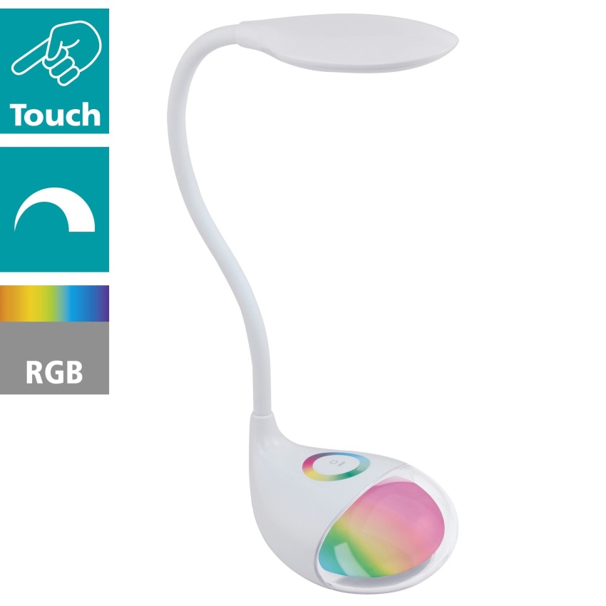 Toto stolní svítidlo ze série CABADO 1 je vyrobeno z bílého plastu. Je vybaven funkcí „Touch-Me“ a je stmívatelný. Má ochranné nízké napětí a je vybavena LED žárovkou.
