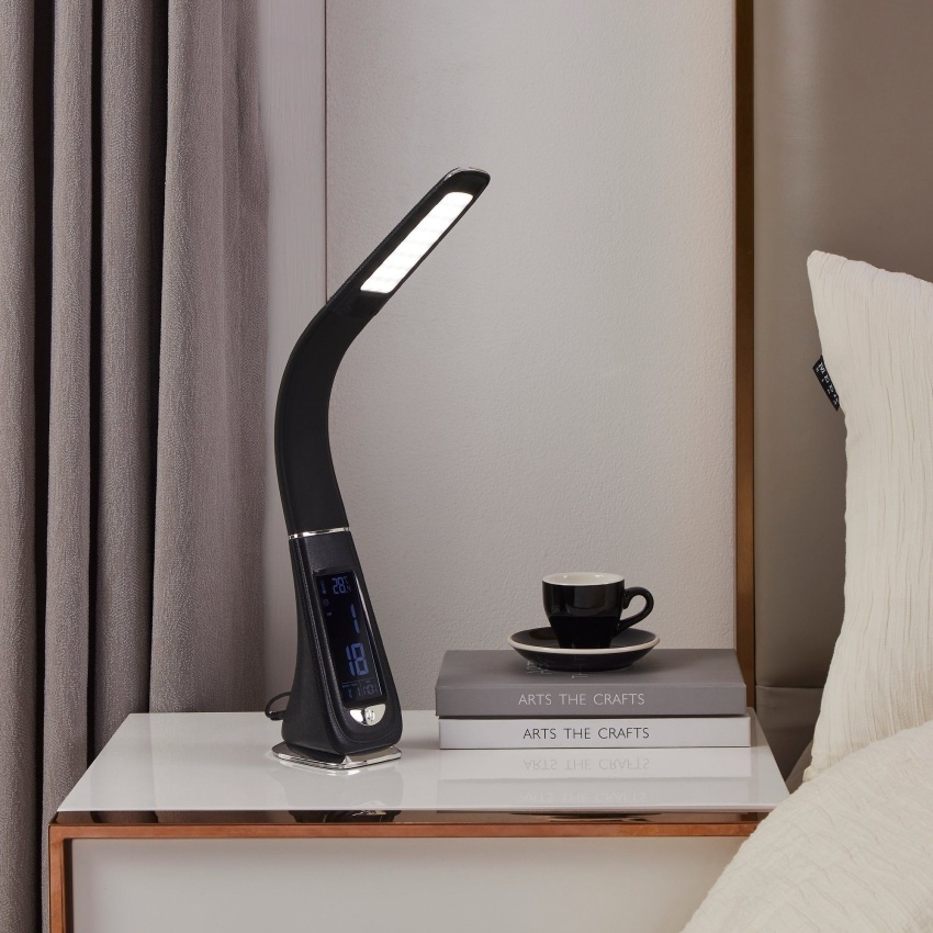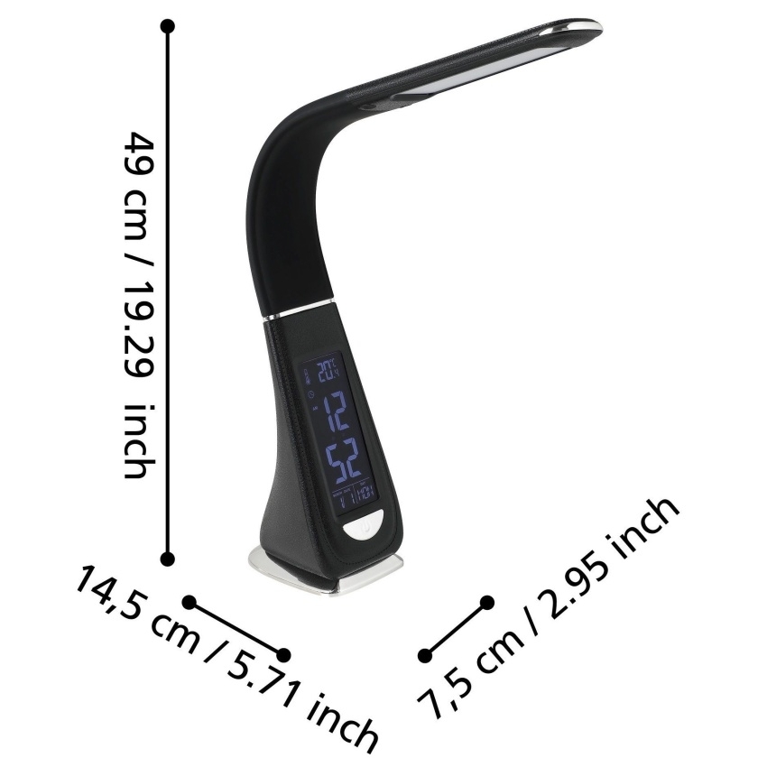 EGLO COGNOLI 97914 je moderní stolní LED lampička v elegantním černém provedení, která spojuje stylový vzhled s praktickými funkcemi. Je vybavena dotykovým ovládáním a stmívatelným LED světelným zdrojem s neutrální bílou barvou světla o teplotě 5000 K, vhodnou pro čtení i práci. Vestavěný digitální displej zobrazuje čas, datum a teplotu, díky čemuž lampička poslouží i jako praktický doplněk na pracovní nebo noční stolek. Je ideální pro studenty, kanceláře i moderní domácnosti a díky kompaktním rozměrům ji lze snadno umístit kamkoliv.