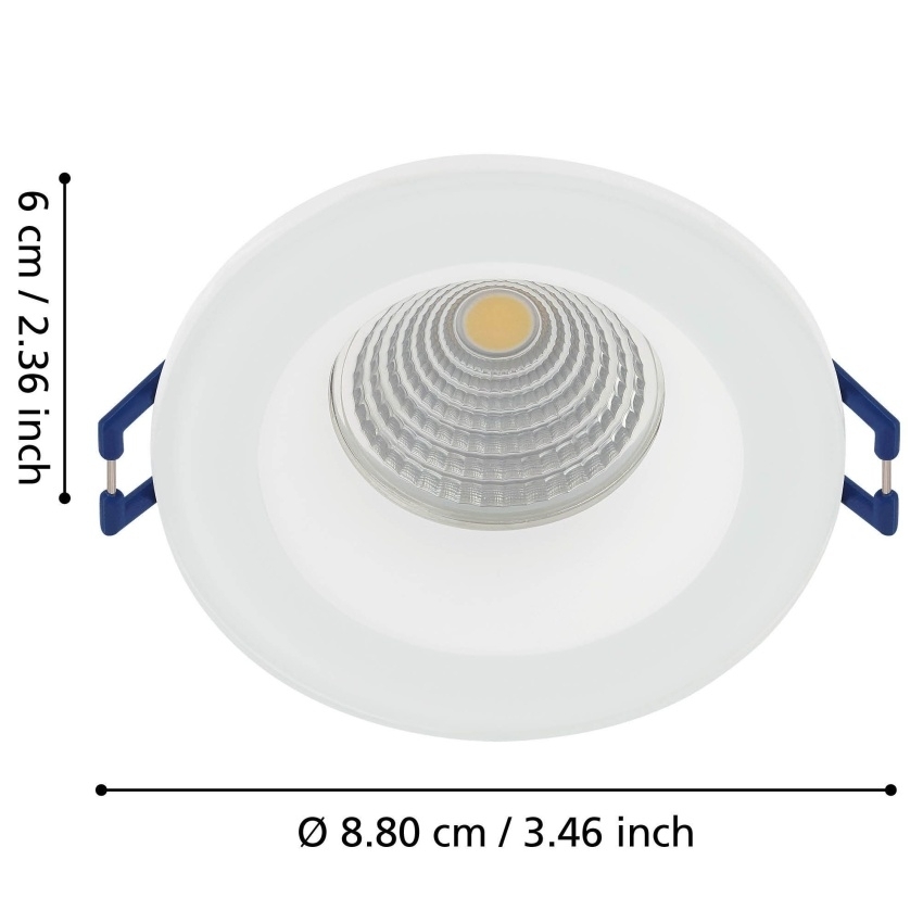Vestavné LED svítidlo EGLO SALABATE 98241, 6 W, 450 lm, 4000 K (neutrální bílá), průměr 88 mm, bílé, IP44.