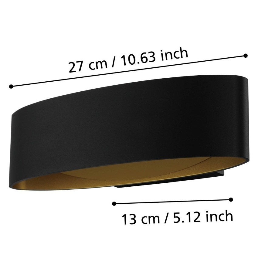 EGLO MACCACARI 98542 je moderní nástěnné LED svítidlo s elegantní kombinací černé a zlaté barvy, které vynikne v každém interiéru. Díky svému tvaru vytváří efektní osvětlení směrem nahoru i dolů, čímž dodává prostoru příjemnou atmosféru. Svítidlo je ideální pro použití v chodbách, halách, na schodištích nebo jako doplňkové světlo v obývacím pokoji či ložnici. Integrovaný LED zdroj o výkonu 10 W poskytuje teplé bílé světlo o teplotě 3000 K a světelném toku 1100 lm, které zajišťuje útulné a přirozené osvětlení. Kvalitní materiály z hliníku, oceli a plastu zaručují dlouhou životnost a moderní vzhled.