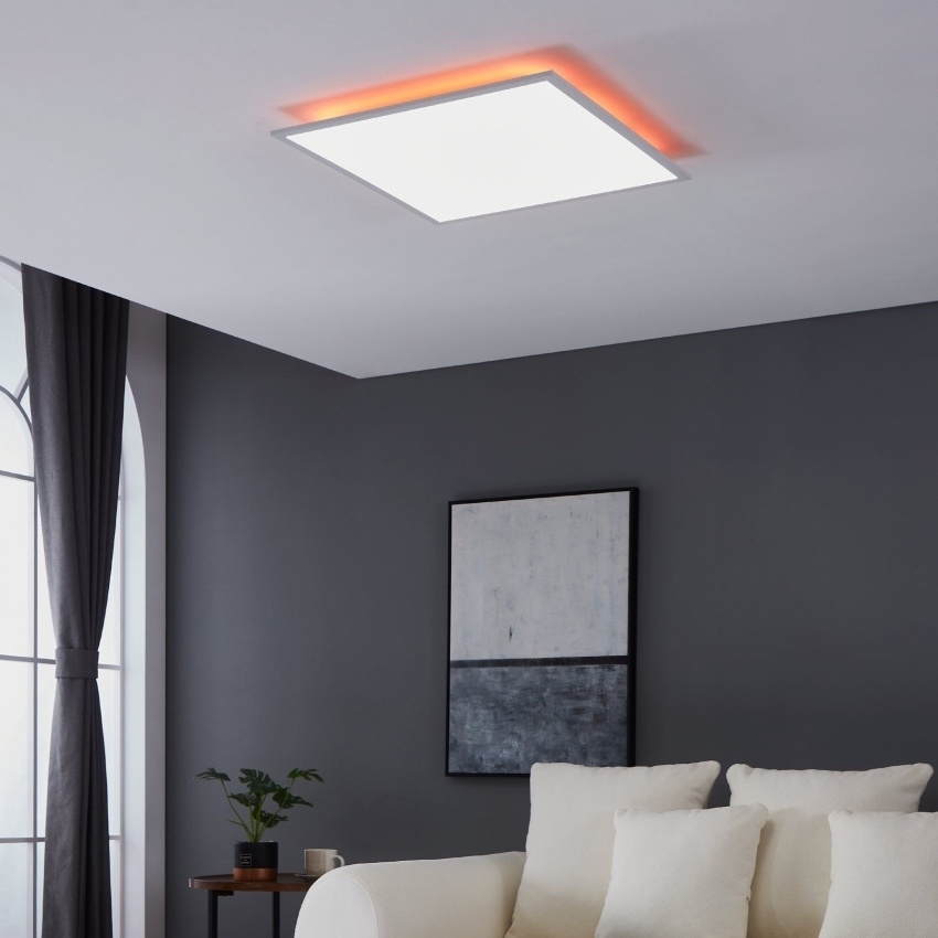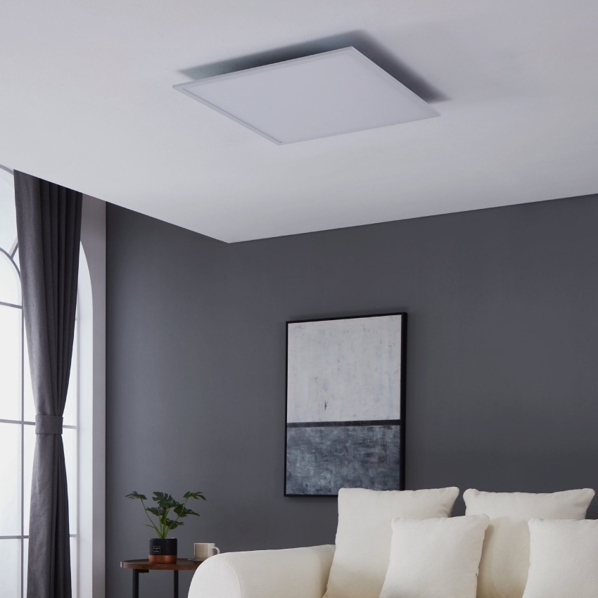 EGLO SALOBRENA-B 98766 je moderní stropní LED svítidlo s funkcí RGB+TW, které nabízí široké možnosti nastavení barvy a teploty světla. Díky výběru mezi teplou, neutrální a studenou bílou (2700–6500 K) i barevnému RGB podsvícení můžete snadno přizpůsobit osvětlení náladě nebo příležitosti. Svítidlo o rozměrech 595 × 595 mm poskytuje rovnoměrné světlo s vysokým výkonem 32,5 W a světelným tokem 4200 lm. Pomocí přiloženého dálkového ovladače lze pohodlně měnit jas, barvu i barevnou teplotu světla. Díky elegantnímu bílému designu s hliníkovým rámem se skvěle hodí do moderních interiérů, obývacích pokojů, kanceláří i kuchyní.