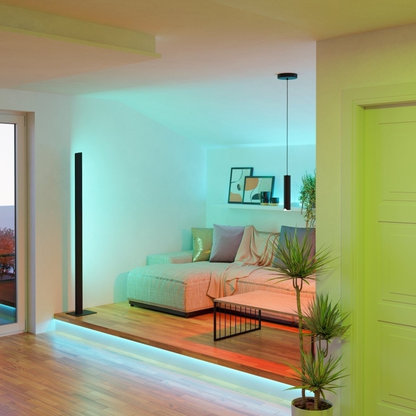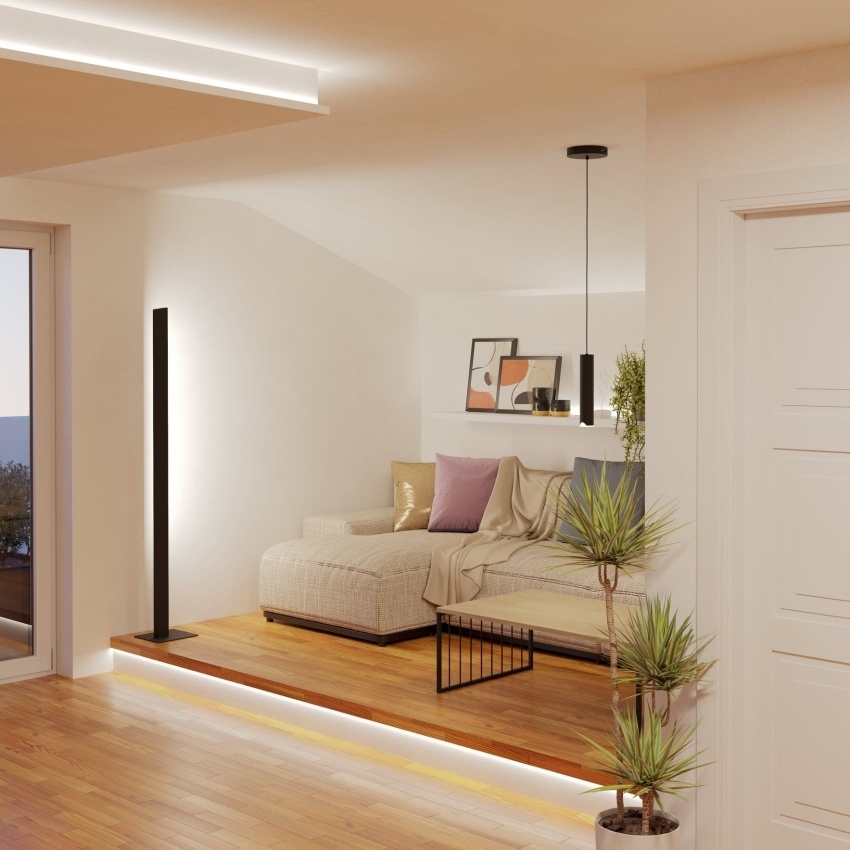 EGLO SIMOLARIS-Z 99605 je inteligentní stojací LED svítidlo z řady Connect-Z Smart Home, které spojuje minimalistický design s pokročilou světelnou technologií. Je vyrobeno z černého kovu a doplněno bílým plastovým difuzorem pro rovnoměrné a měkké rozložení světla. Svítidlo nabízí vysoký světelný tok 4200 lm a umožňuje nastavit teplotu bílé barvy v rozsahu 2700–6500 K nebo zvolit barvy RGB. Ovládání je možné pomocí dálkového ovladače či aplikace (AwoX Home Control) přes Bluetooth a ZigBee 3.0. Díky funkci stmívání, časovači a možnosti změny barev je ideální volbou pro obývací pokoje, ložnice nebo pracovny, kde vytvoří dokonalou atmosféru pro jakoukoli příležitost.