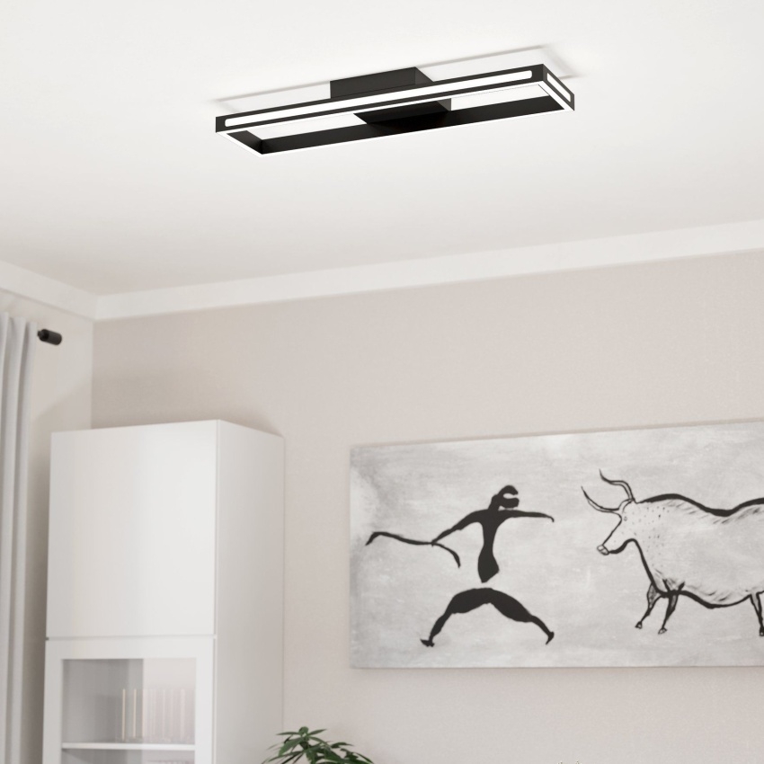 EGLO SALVILANAS-Z 99679 je moderní chytré stropní LED svítidlo z řady Connect-Z Smart Home, které spojuje minimalistický design s pokročilými funkcemi. Obdélníkový černý rám s bílými difuzory vyzařuje světlo jak směrem dolů, tak i nepřímo do stran, čímž vytváří příjemnou světelnou atmosféru. Pomocí aplikace AwoX Home Control nebo dálkového ovladače můžete svítidlo zapínat, vypínat, stmívat a nastavovat teplotu bílé barvy od teplé po studenou (2700–6500 K). Přes Bluetooth a ZigBee 3.0 lze světlo integrovat do chytré domácnosti a ovládat i hlasem. Ideální pro obývací pokoj, kuchyni, ložnici nebo chodbu, kde nabídne komfortní a efektivní osvětlení.