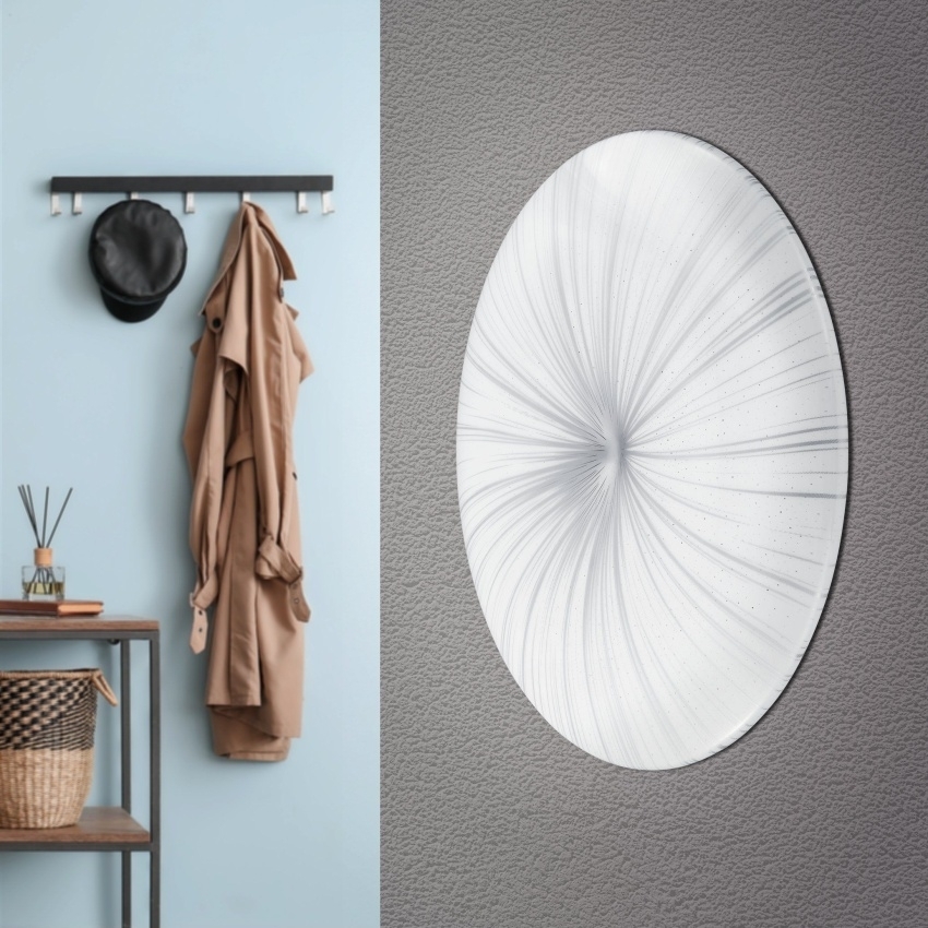 EGLO NIEVES 99699 je elegantní LED svítidlo, které lze použít jako stropní i nástěnné. Kombinace bílé barvy s jemným stříbrným zdobením vytváří efektní vzhled, jenž po rozsvícení působí moderně a dekorativně. Svítidlo poskytuje příjemné teplé bílé světlo a je ideální pro osvětlení ložnice, obývacího pokoje, jídelny, kuchyně, chodby či schodiště. Díky jednoduchému designu se hodí do klasických i moderních interiérů a přináší rovnoměrné rozptýlené světlo.