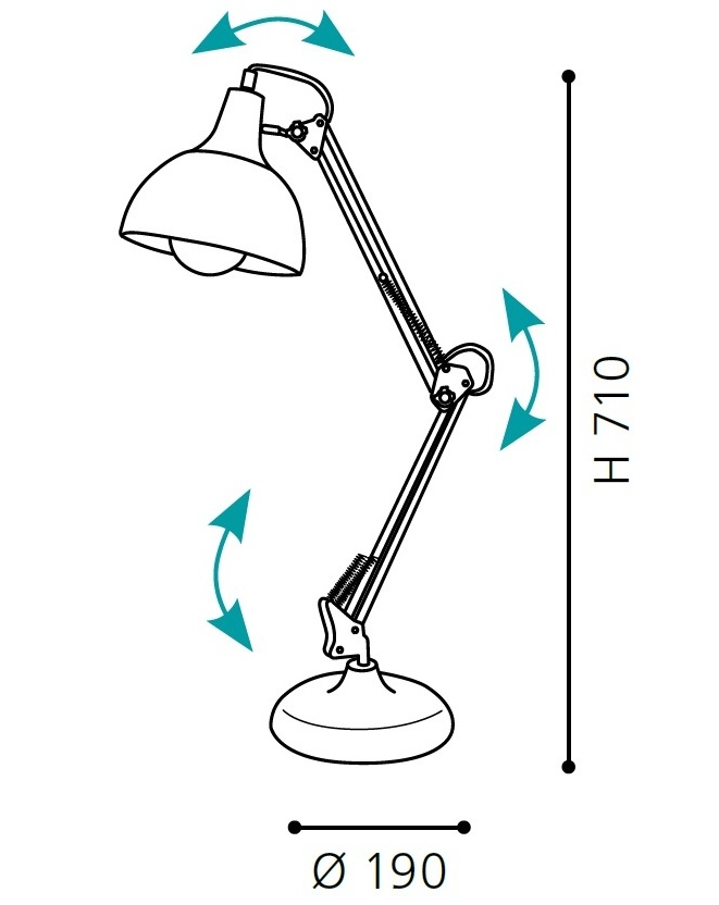 Stolní lampa BORGILLIO je vyrobena z černého kovu a má nastavitelnou hlavu s bílou vnitřní povrchovou úpravou. Praktické klouby na korpusu umožňují během okamžiku nastavit výšku, aby se dokonale rozsvítila konkrétní oblast místnosti. Lampa lze snadno zapínat a vypínat pomocí in-line spínače a hladce zapadne do moderních interiérů. Žárovka není součástí dodávky. Výrobek má objímku žárovky E27 a vyžaduje žárovku E27.