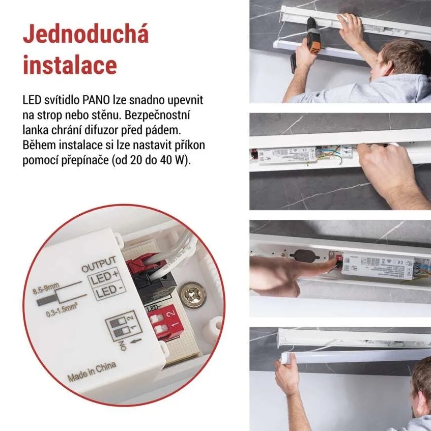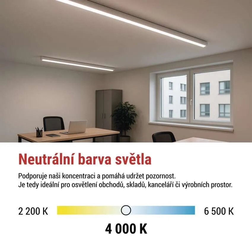 LED lineární svítidlo EMOS PANO ZAB102 s příkonem 20-25-35-40 W, světelným tokem 5 600 lm, neutrální bílou barvou světla a krytím IP20.