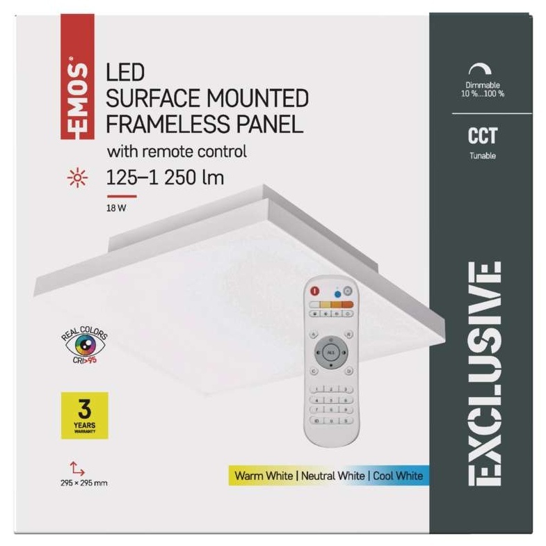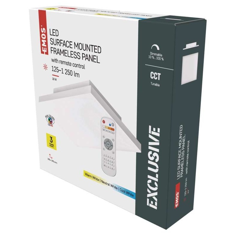 EMOS LED přisazené svítidlo IRVI, čtvercové 18W frameless, stmív. se změnou CCT, CRI>95