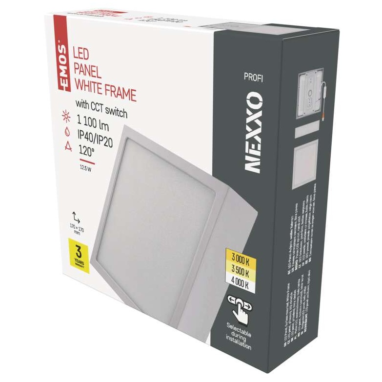 EMOS LED přisazené svítidlo NEXXO, čtvercové, bílé, 12,5W, se změnou CCT