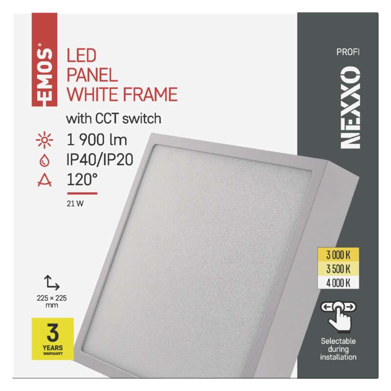 EMOS LED přisazené svítidlo NEXXO, čtvercové, bílé, 21W, se změnou CCT