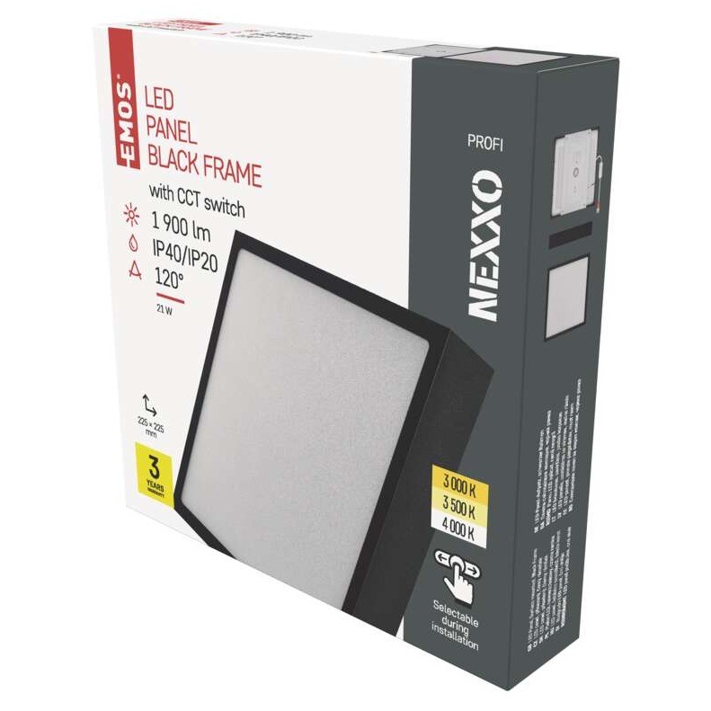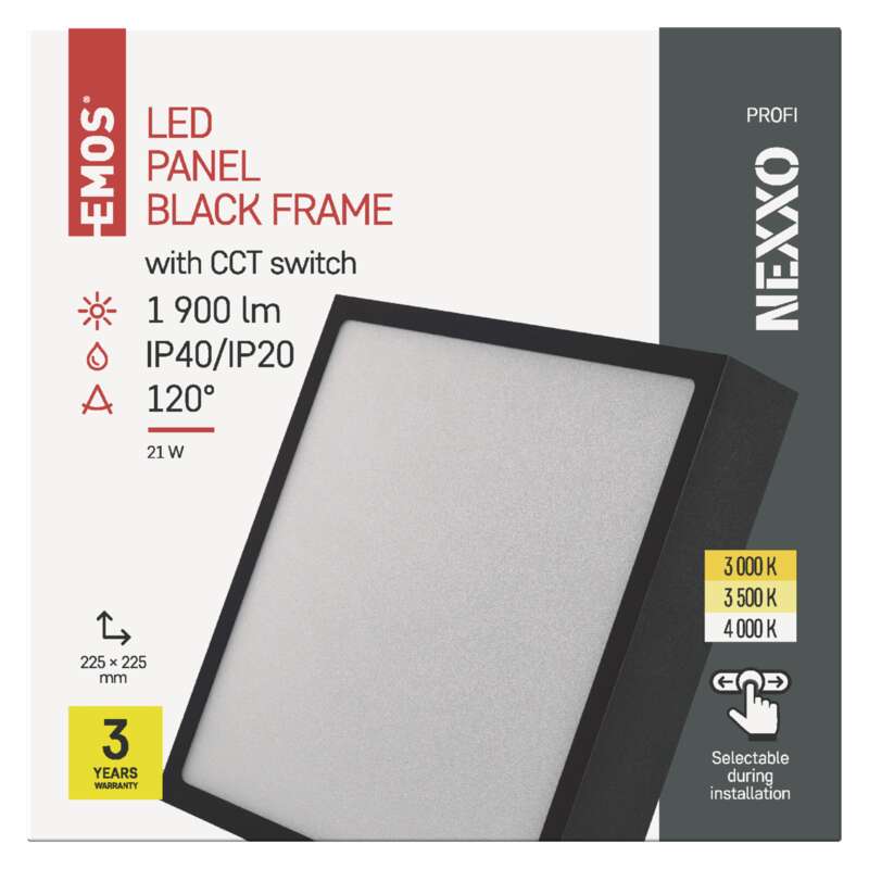 EMOS LED přisazené svítidlo NEXXO, čtvercové, černé, 21W, se změnou CCT