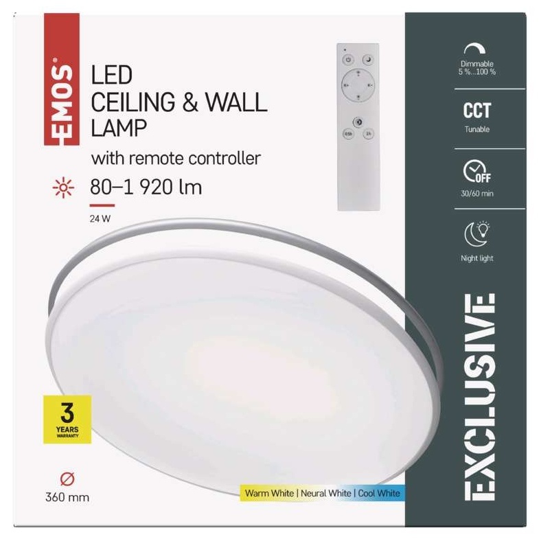 EMOS LED přisazené svítidlo ALVI, kruhové 24W, stmív. se změnou CCT