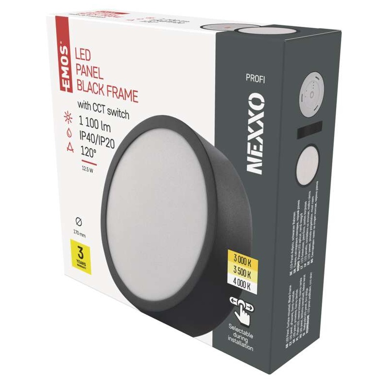 EMOS LED přisazené svítidlo NEXXO, kruhové, černé, 12,5W, se změnou CCT
