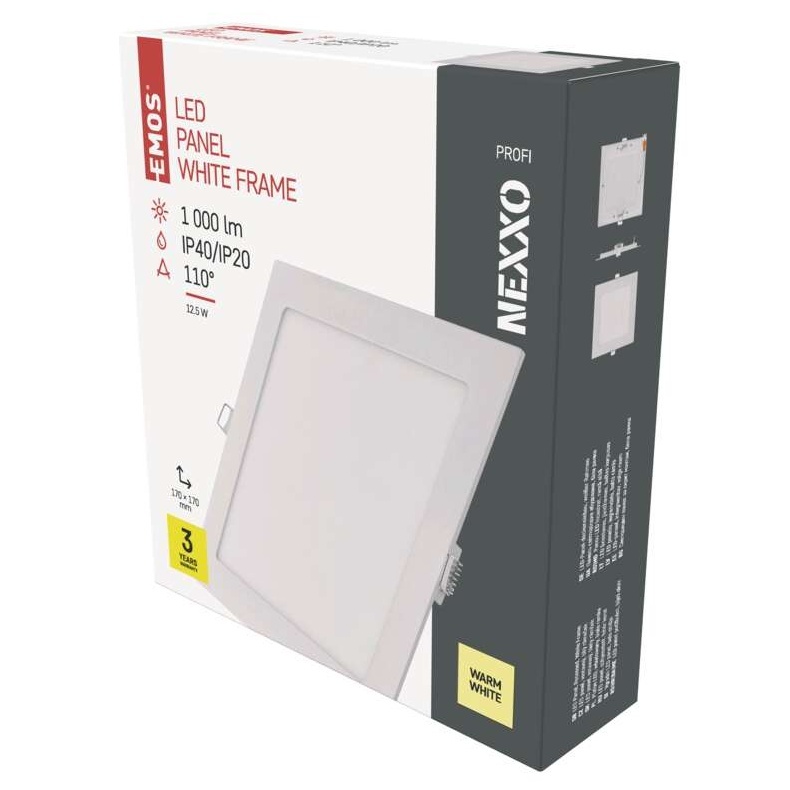EMOS LED vestavné svítidlo NEXXO, čtvercové, bílé, 12,5W, teplá bílá