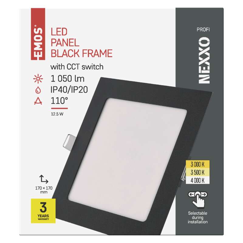 EMOS LED vestavné svítidlo NEXXO, čtvercové, černé, 12,5W, se změnou CCT